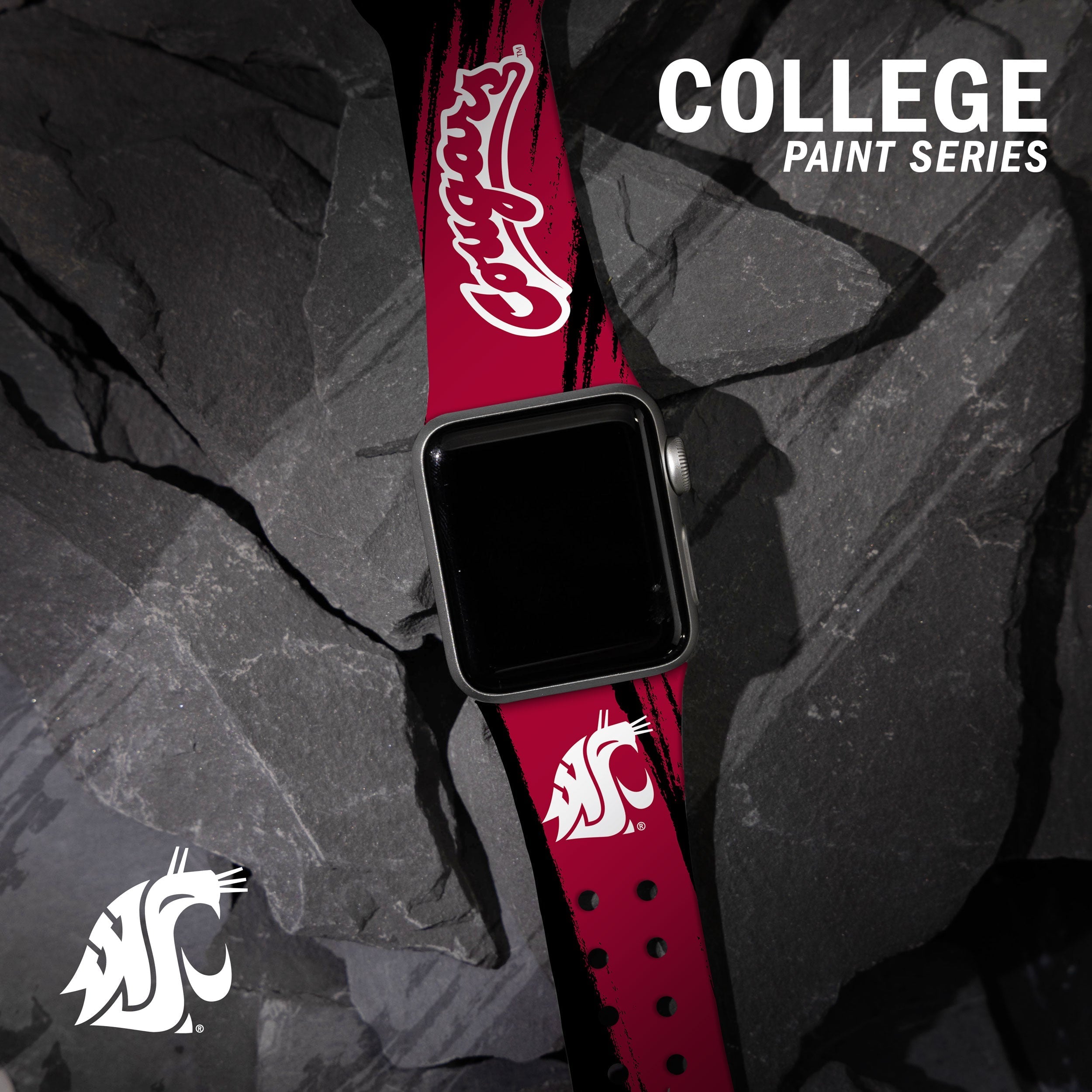 Washington State Cougars HD Apple Watch Band ‐ Paint / 42/44/45/49mm(46mm Series 10) / Short