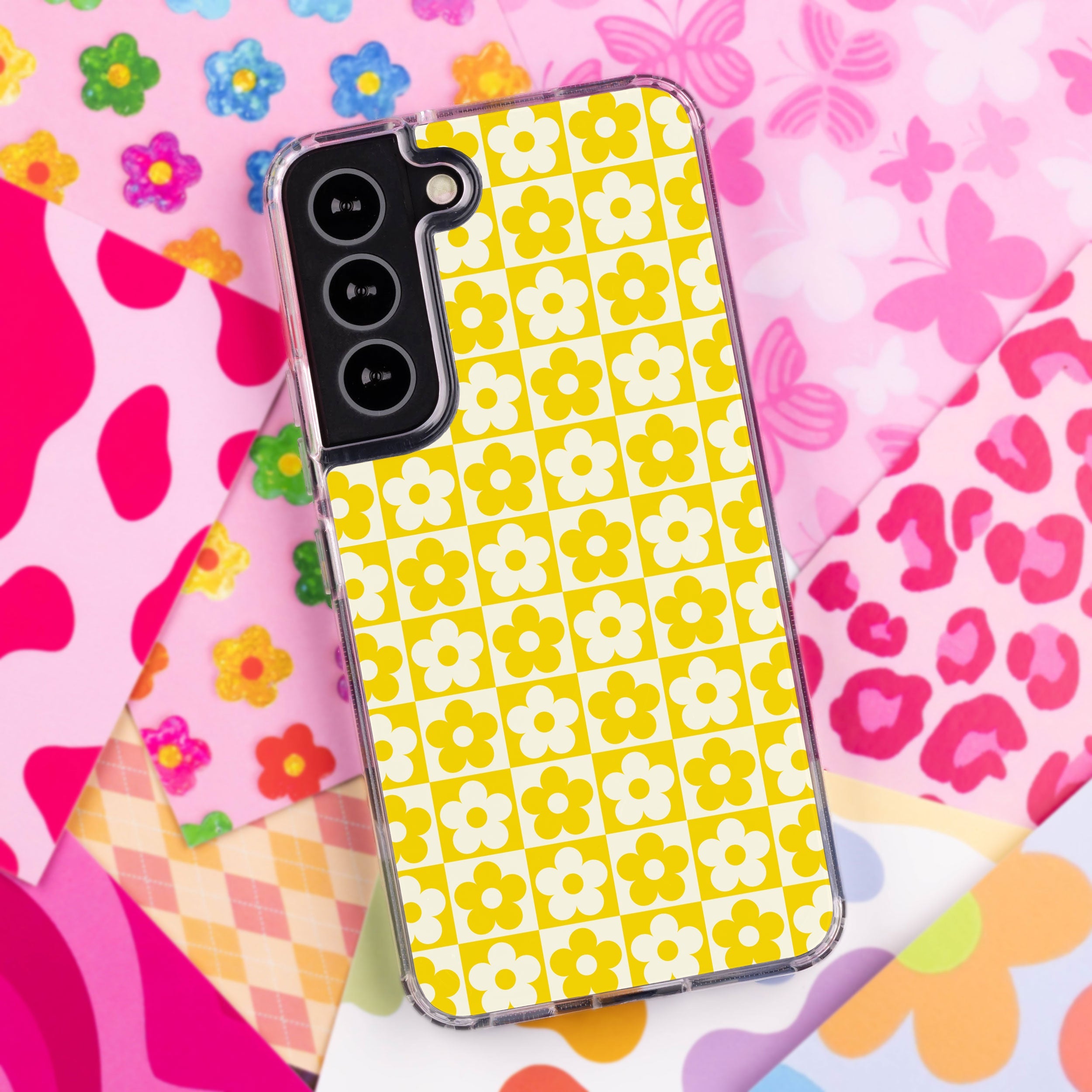 Y2K HD Samsung Galaxy S23 Phone Case ‐ Floral Checkerboard / Galaxy S23