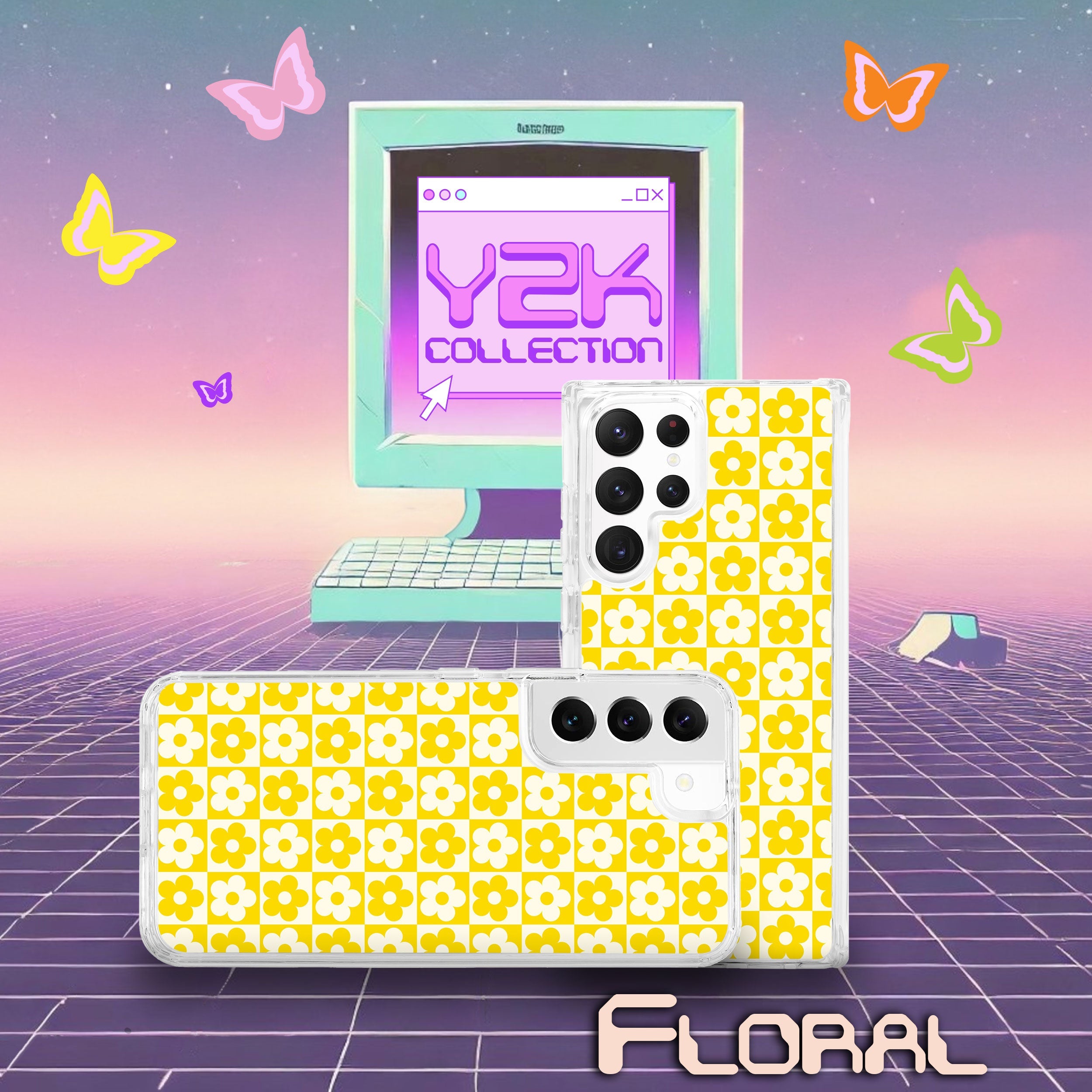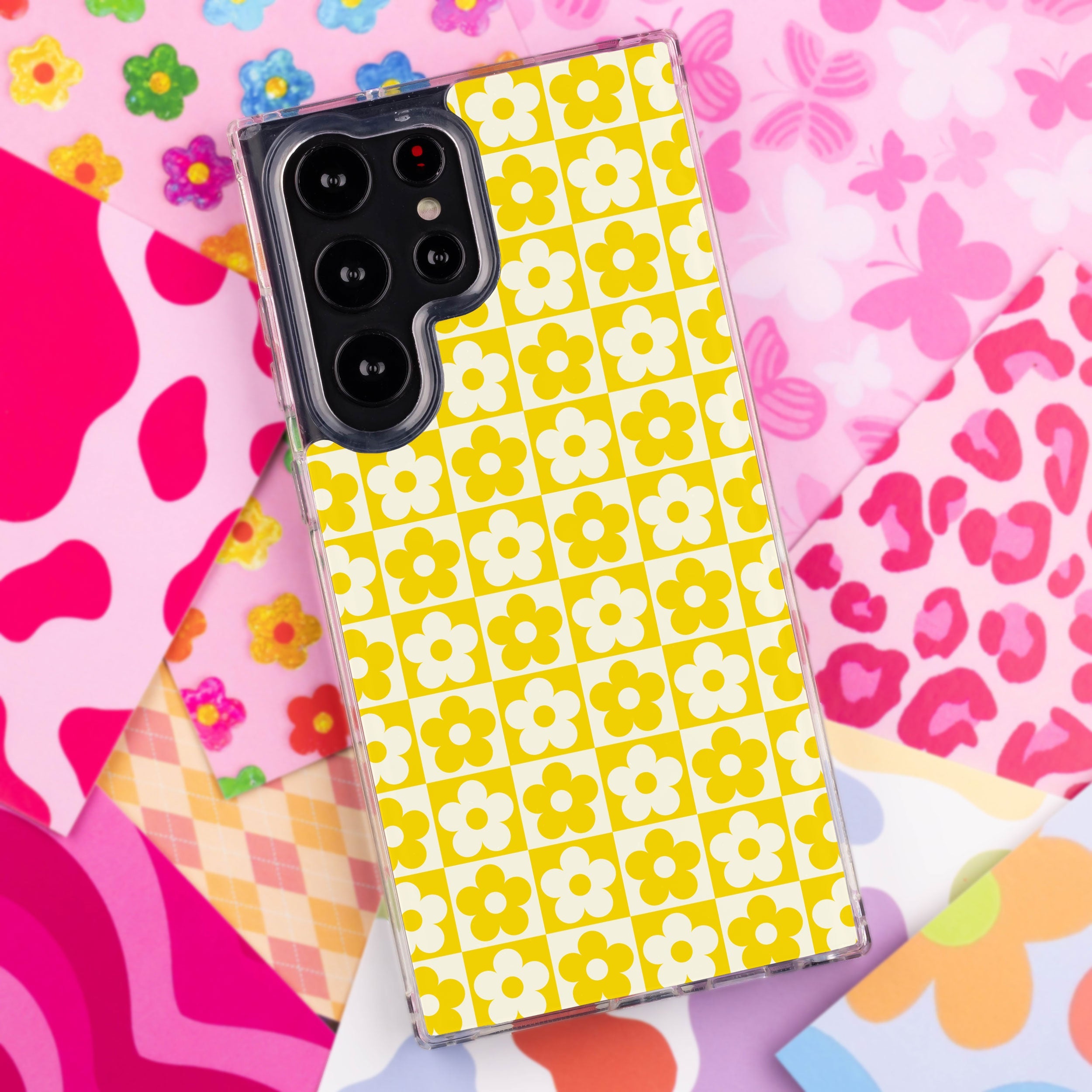 Y2K HD Samsung Galaxy S23 Phone Case ‐ Floral Checkerboard / Galaxy S23 Ultra