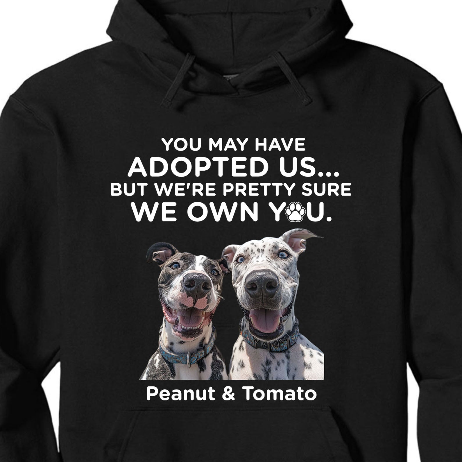 You May Have Adopted Us Shirt, Dog Lovers Shirt, Personalized Custom Photo Dog Shirt T1690 ‐ Pullover Hoodie / Black Colour / 2XL