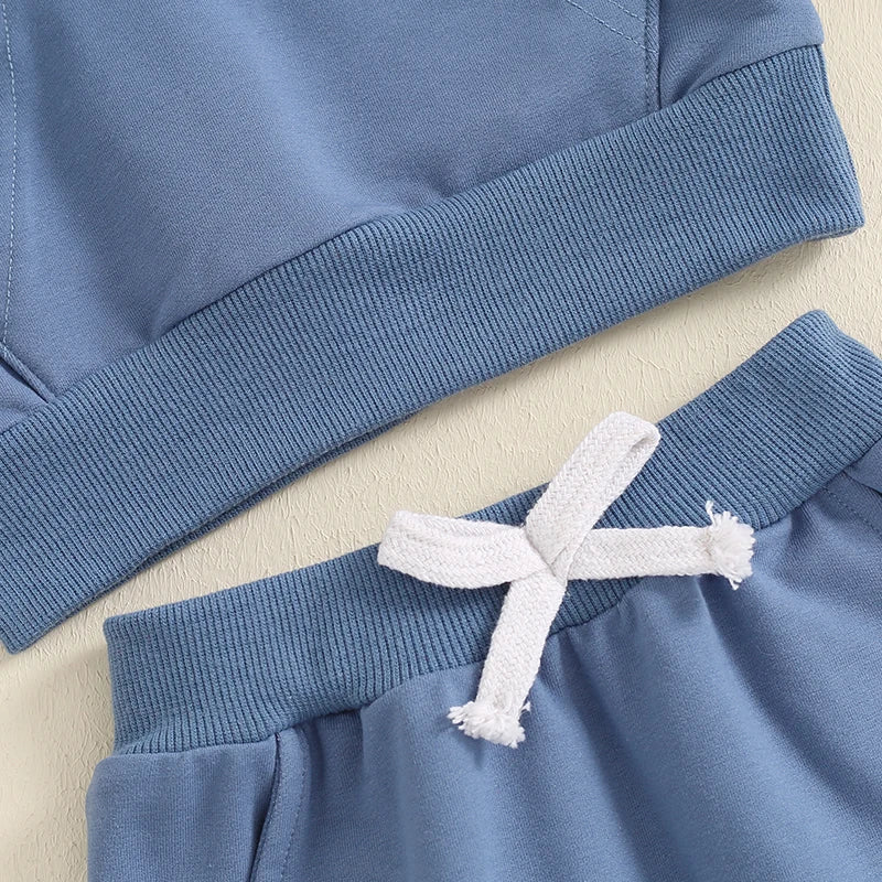 BABY TODDLER BOYS 2PCS DINOSAUR OUTFIT CONTRAST COLOR LONG SLEEVE HOODIE TOP ELASTIC WAIST PANTS SET ‐ Blue / 6-12M / United States
