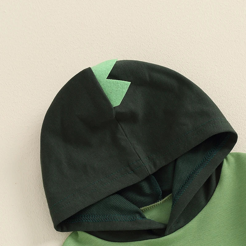 BABY TODDLER BOYS 2PCS DINOSAUR OUTFIT CONTRAST COLOR LONG SLEEVE HOODIE TOP ELASTIC WAIST PANTS SET
