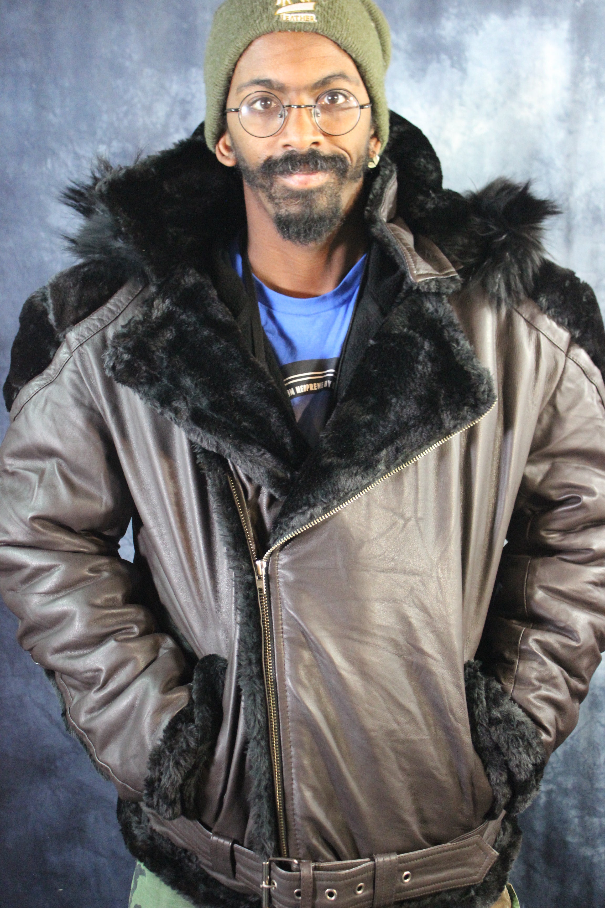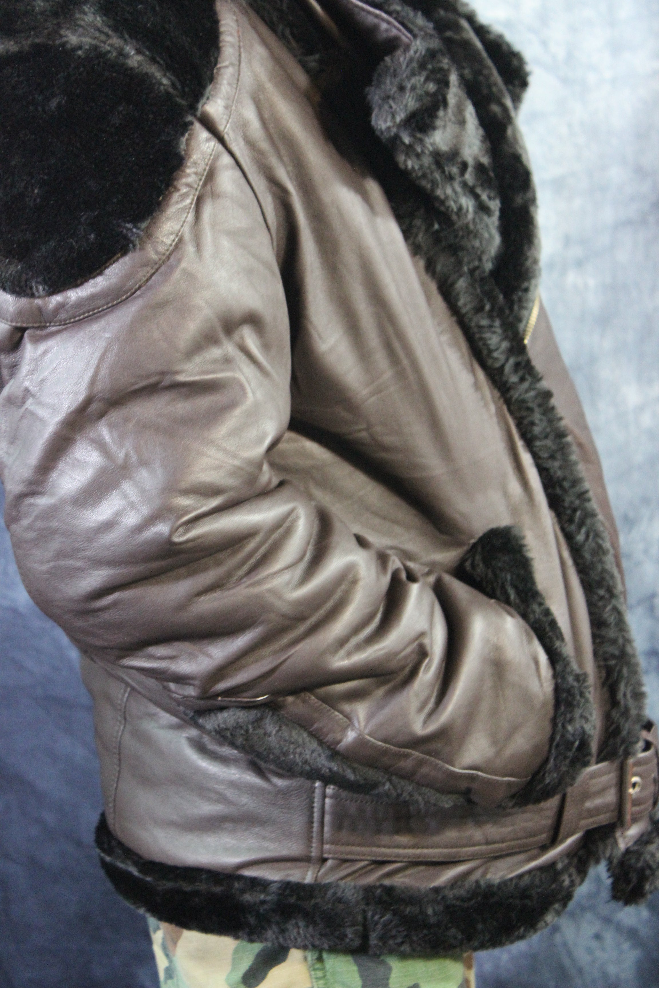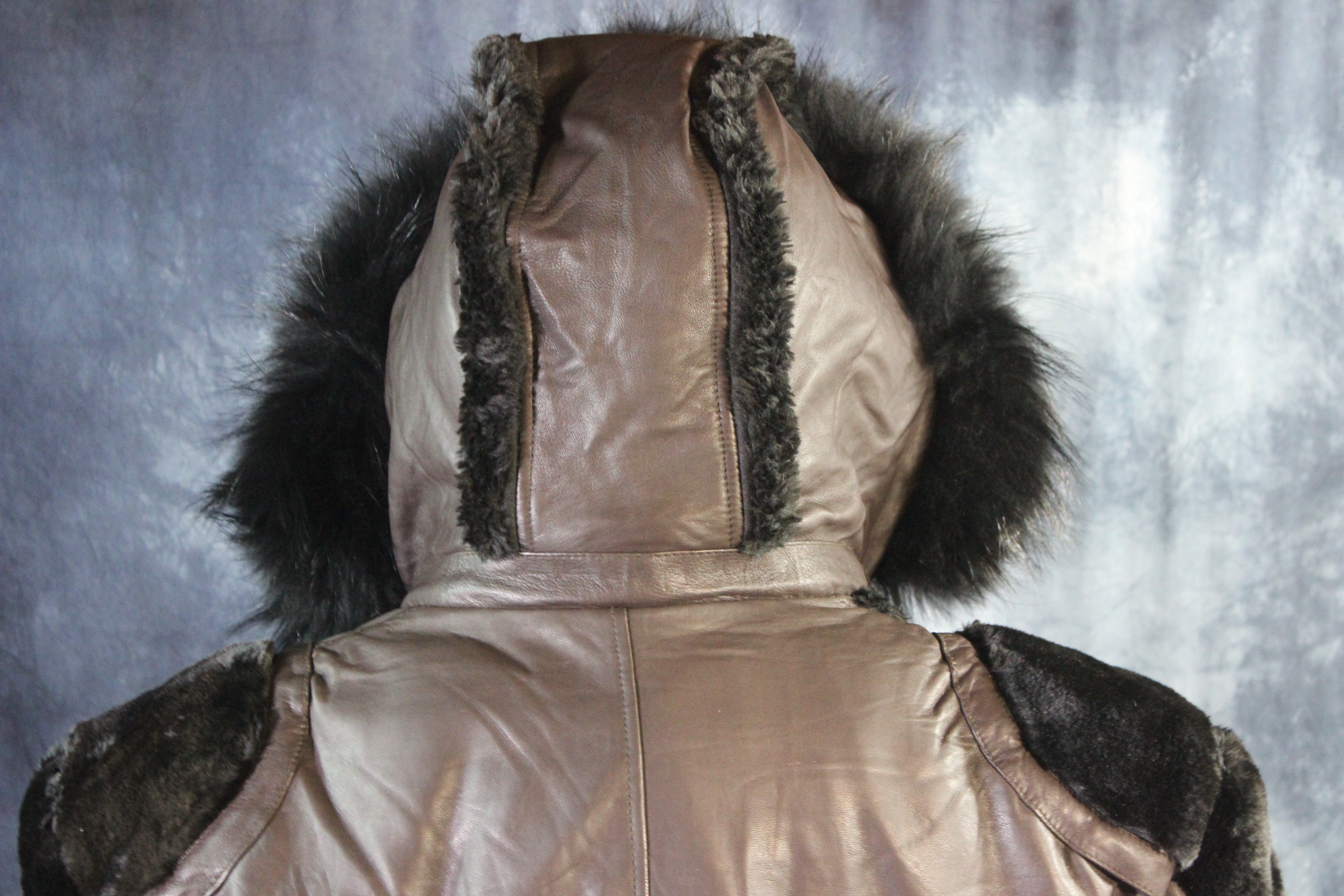 Brown Leather and Fur Jacket by Otter and The Fox ‐ 4XL