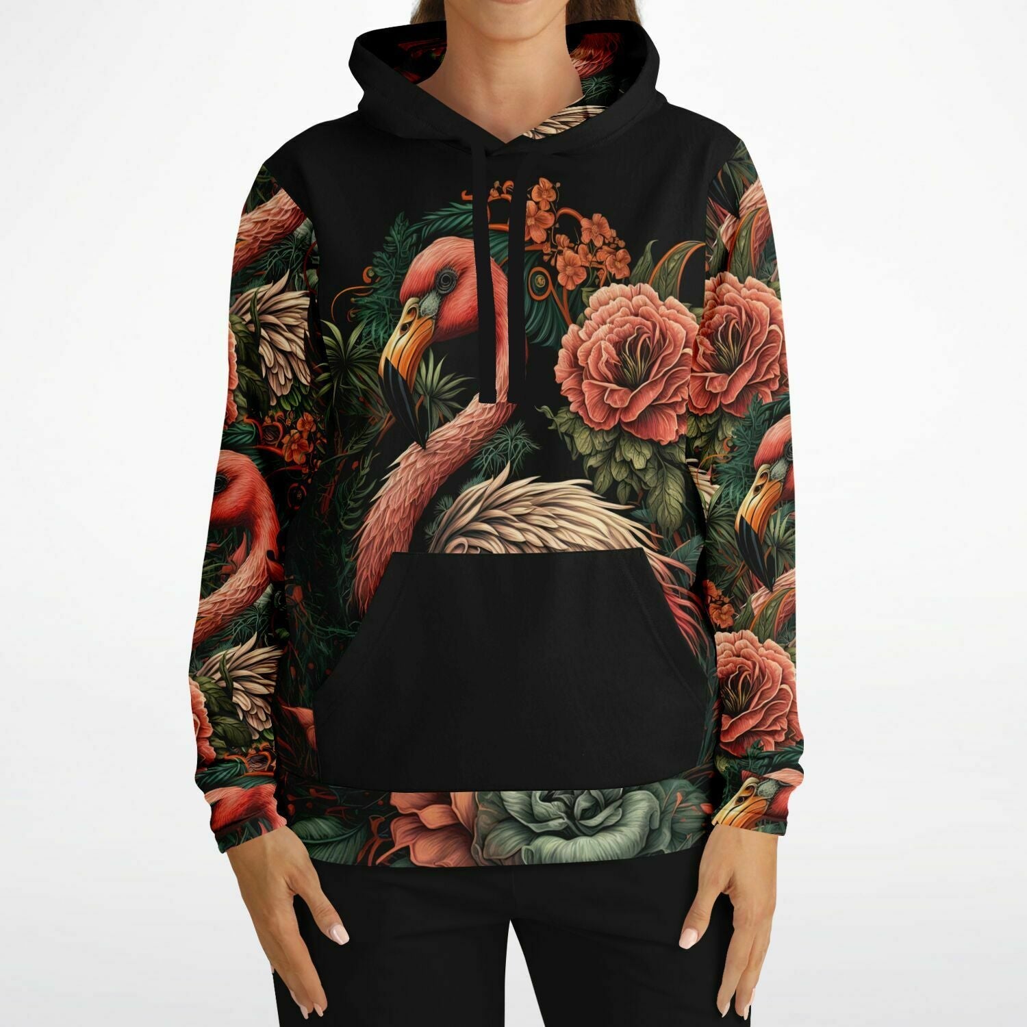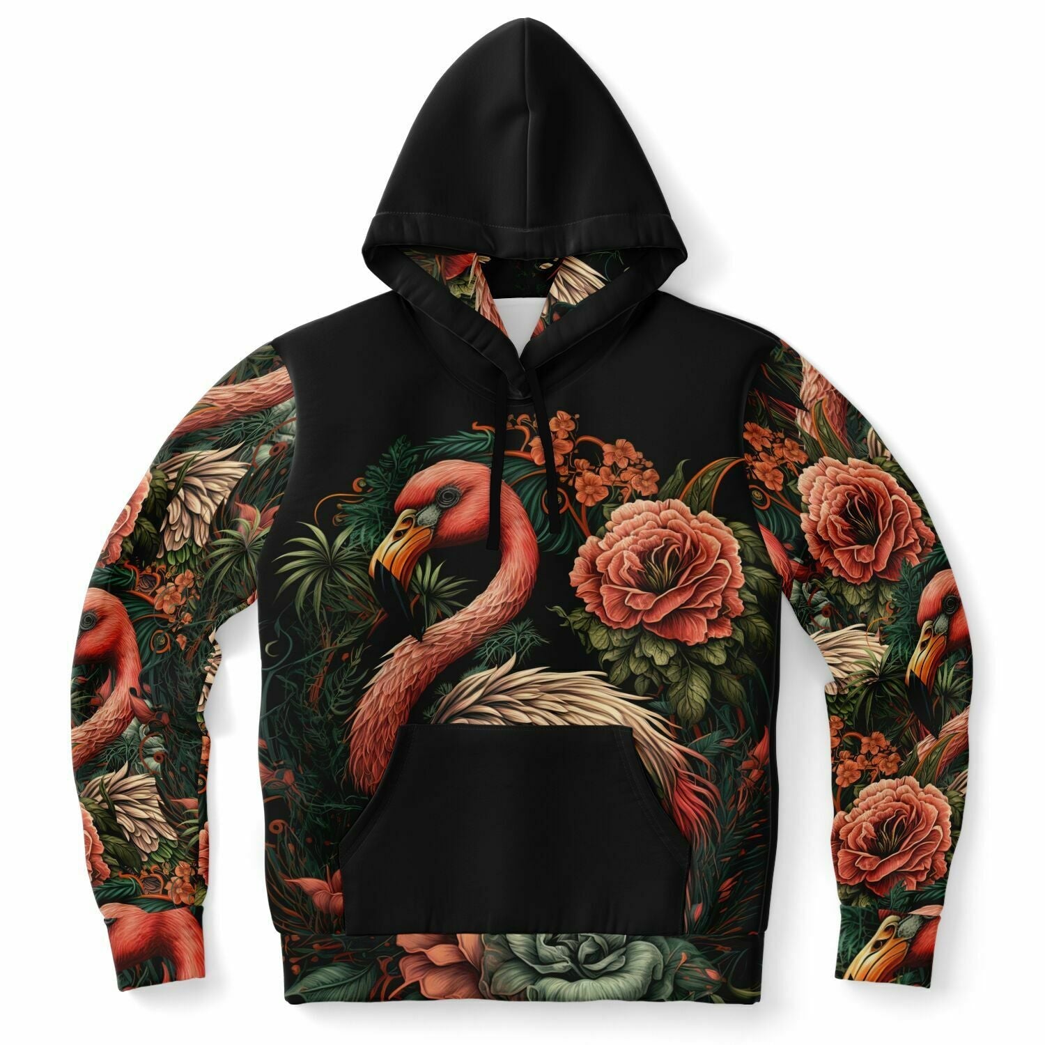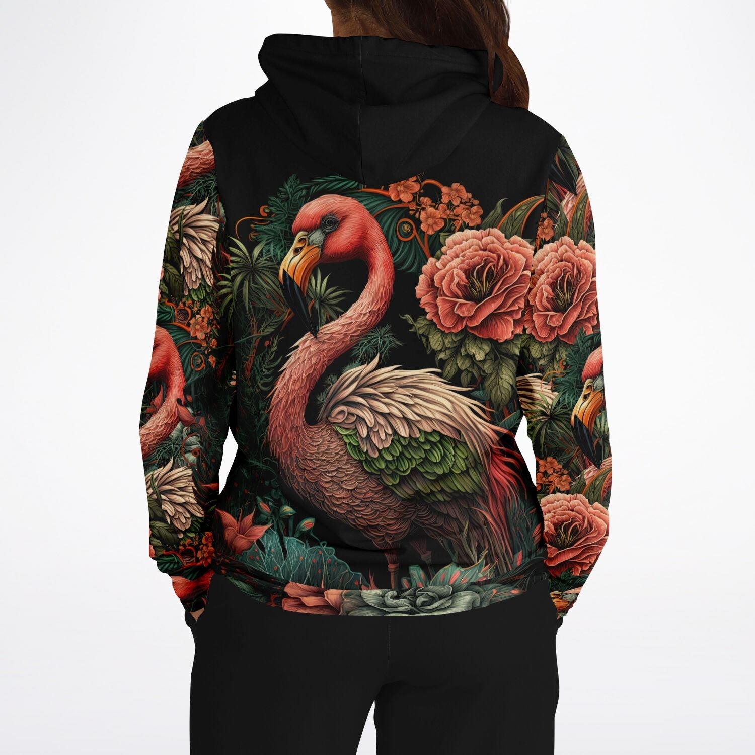 - Flamingo Black Elegant Floral Hoodie