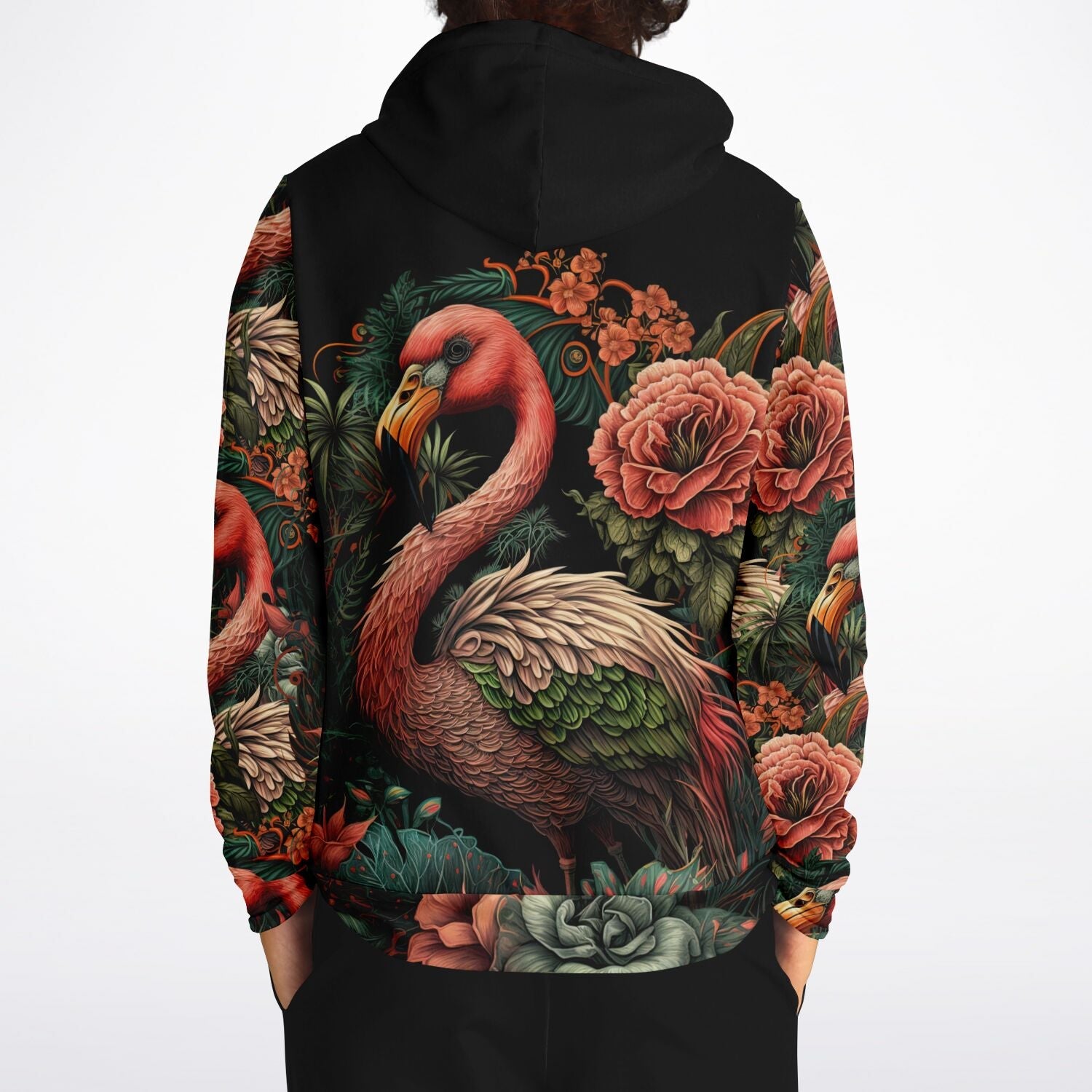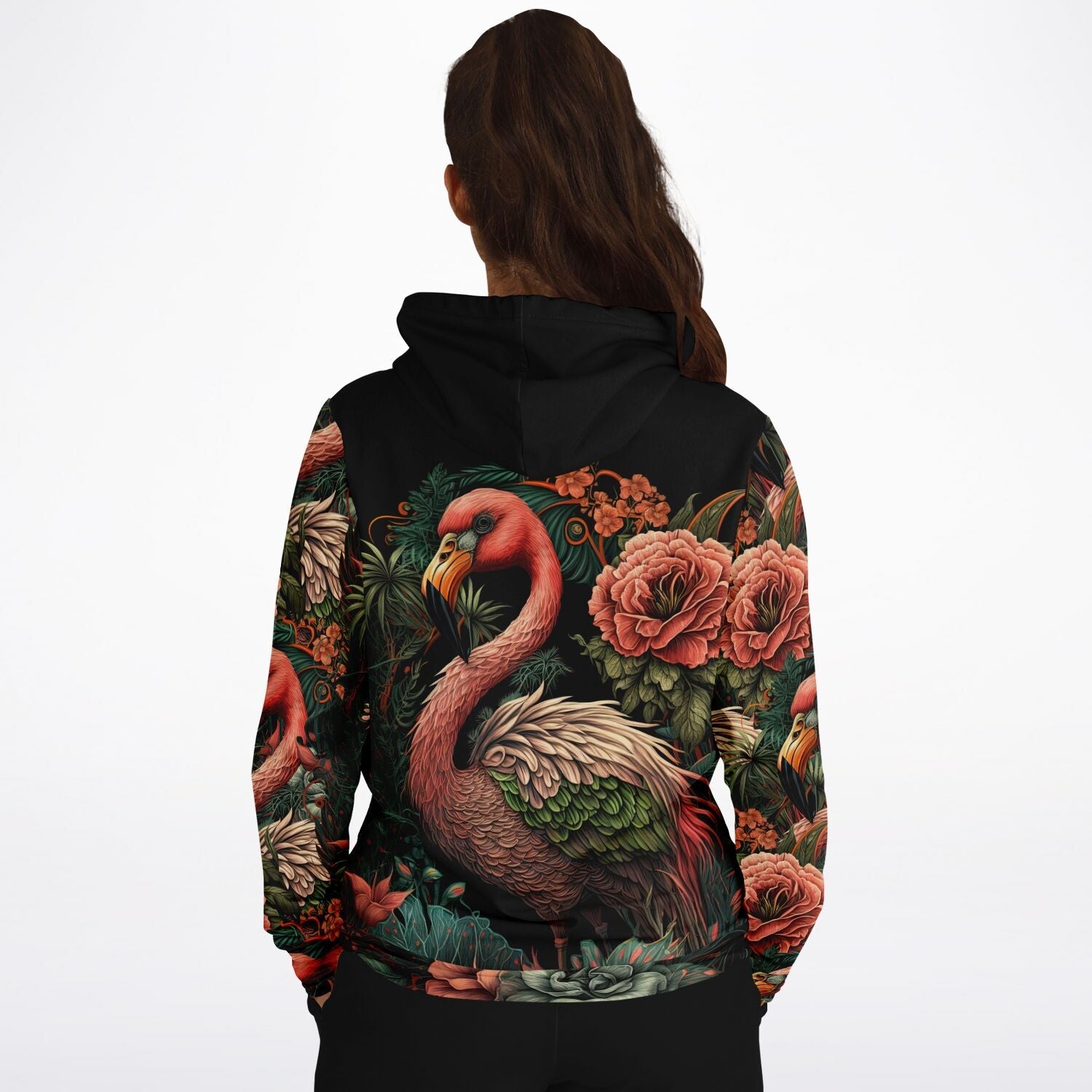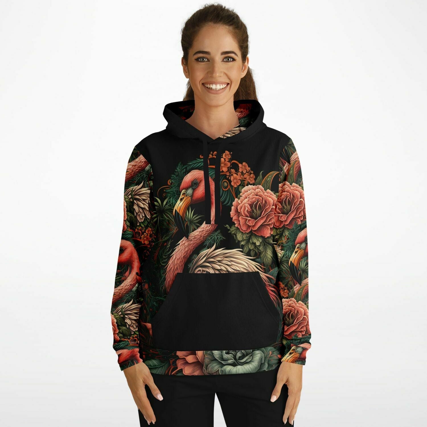 - Flamingo Black Elegant Floral Hoodie
