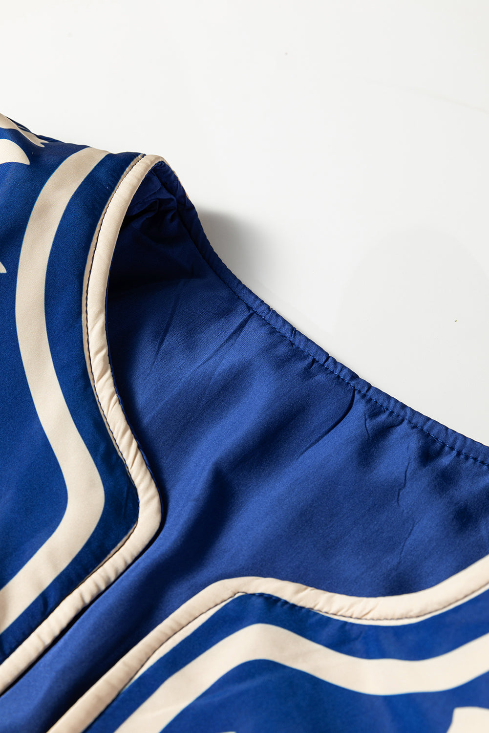 Floral Open Front Buttoned Cuff Jacket ‐ Blue / XL