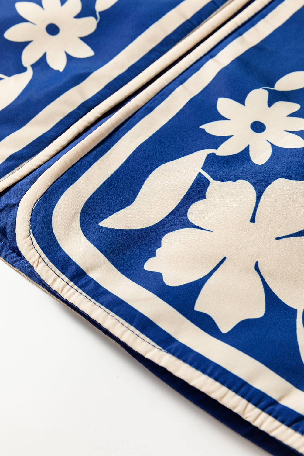 Floral Open Front Buttoned Cuff Jacket ‐ Blue / L