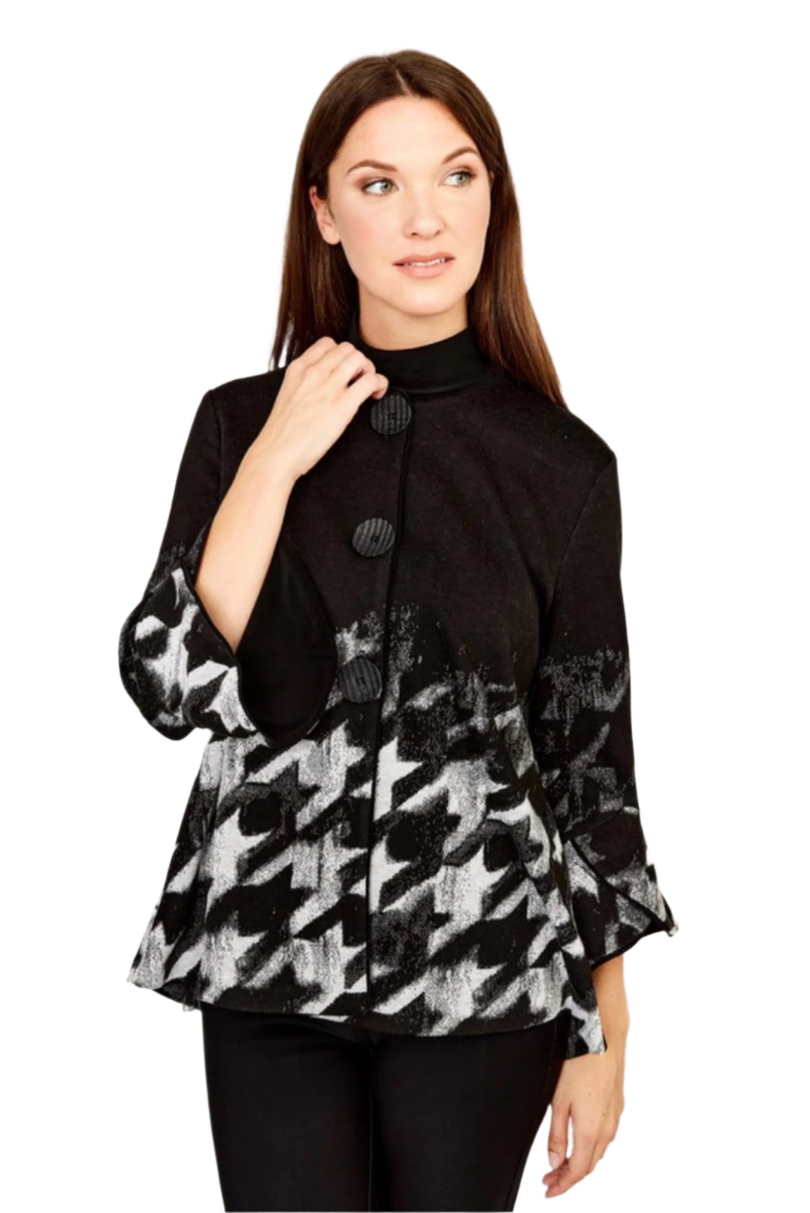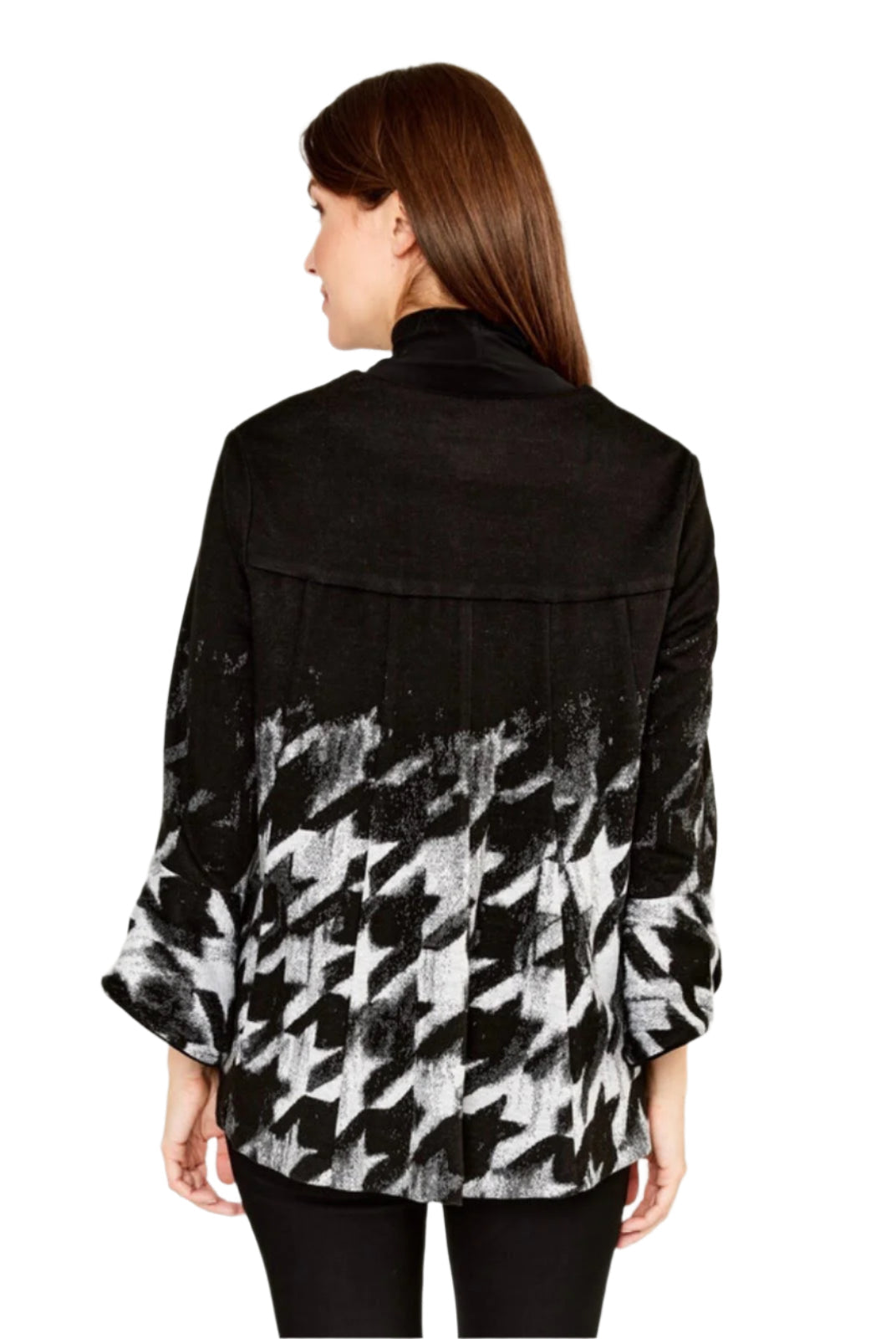 Get ready to swing into style with the Frank Lyman Houndstooth Swing Jacket! Perfect for any occasion, this jacket features a comfortable and stylish knit design that will make you stand out from the crowd. Stay trendy and chic with every step in this unique and playful jacket.
