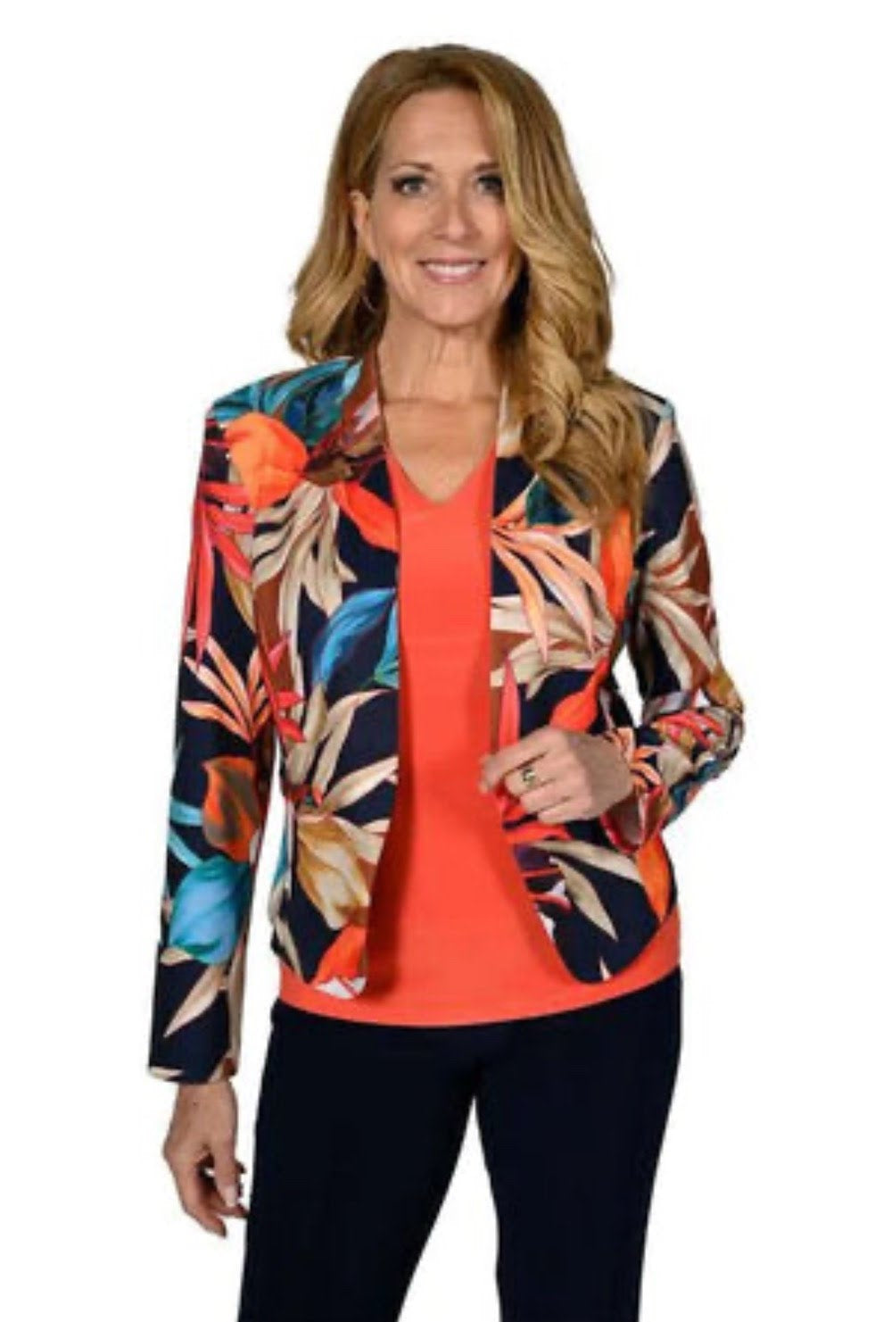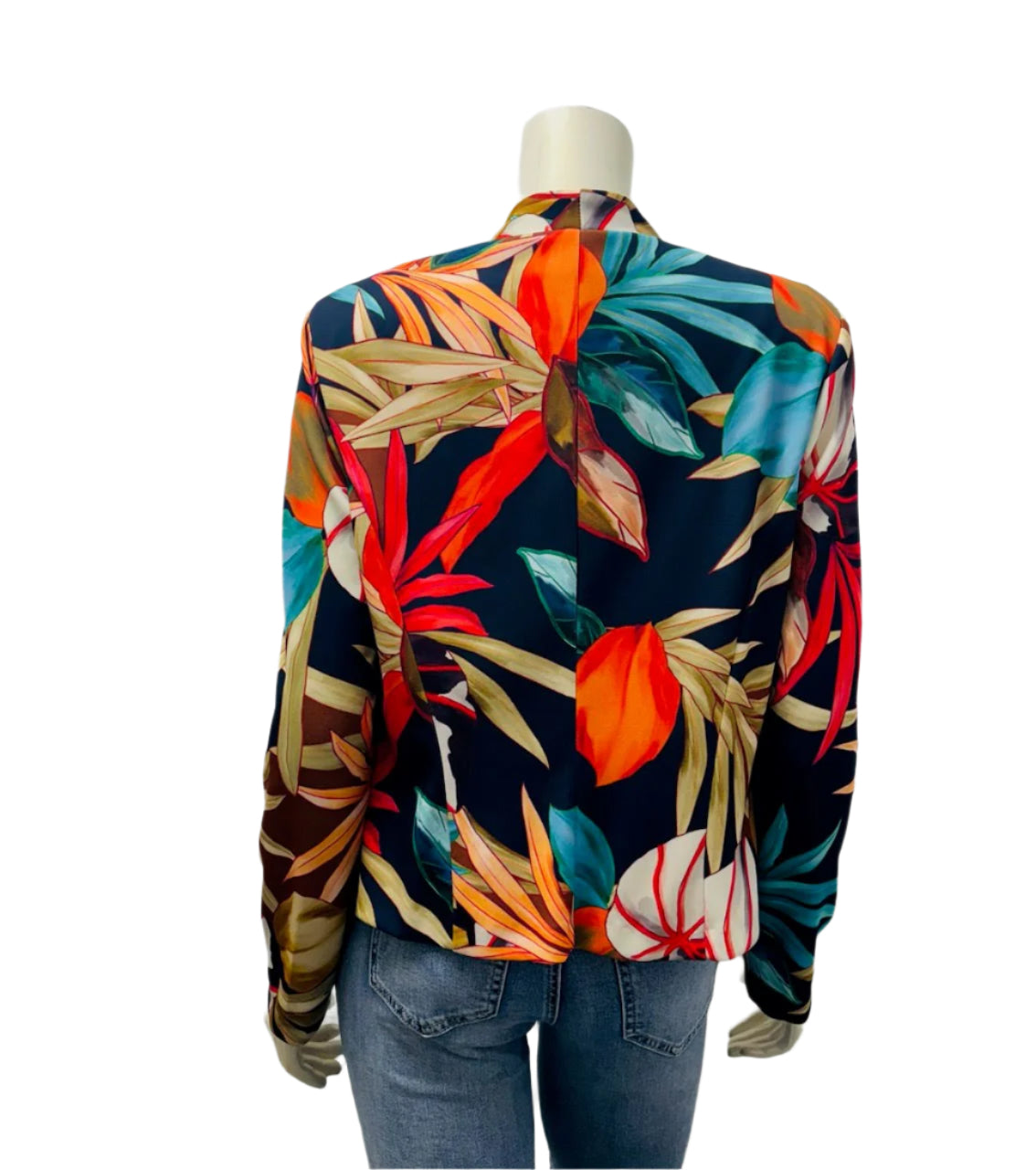 Knit Jacket - Navy/Orange Tropical Print