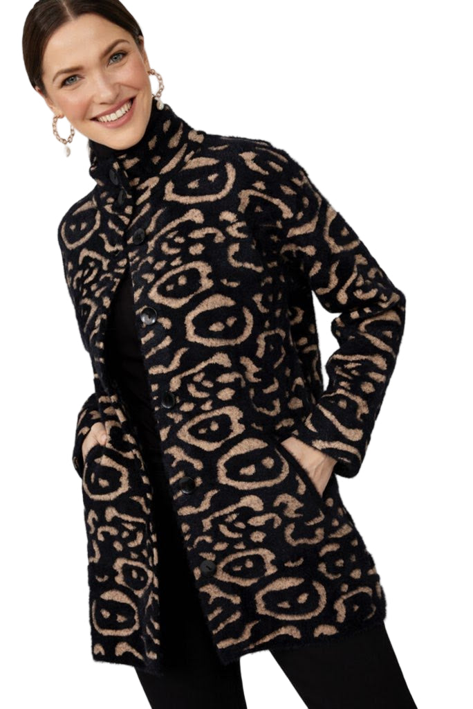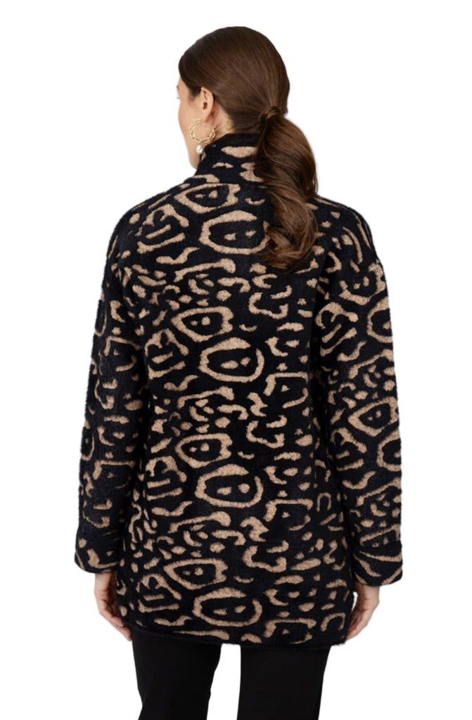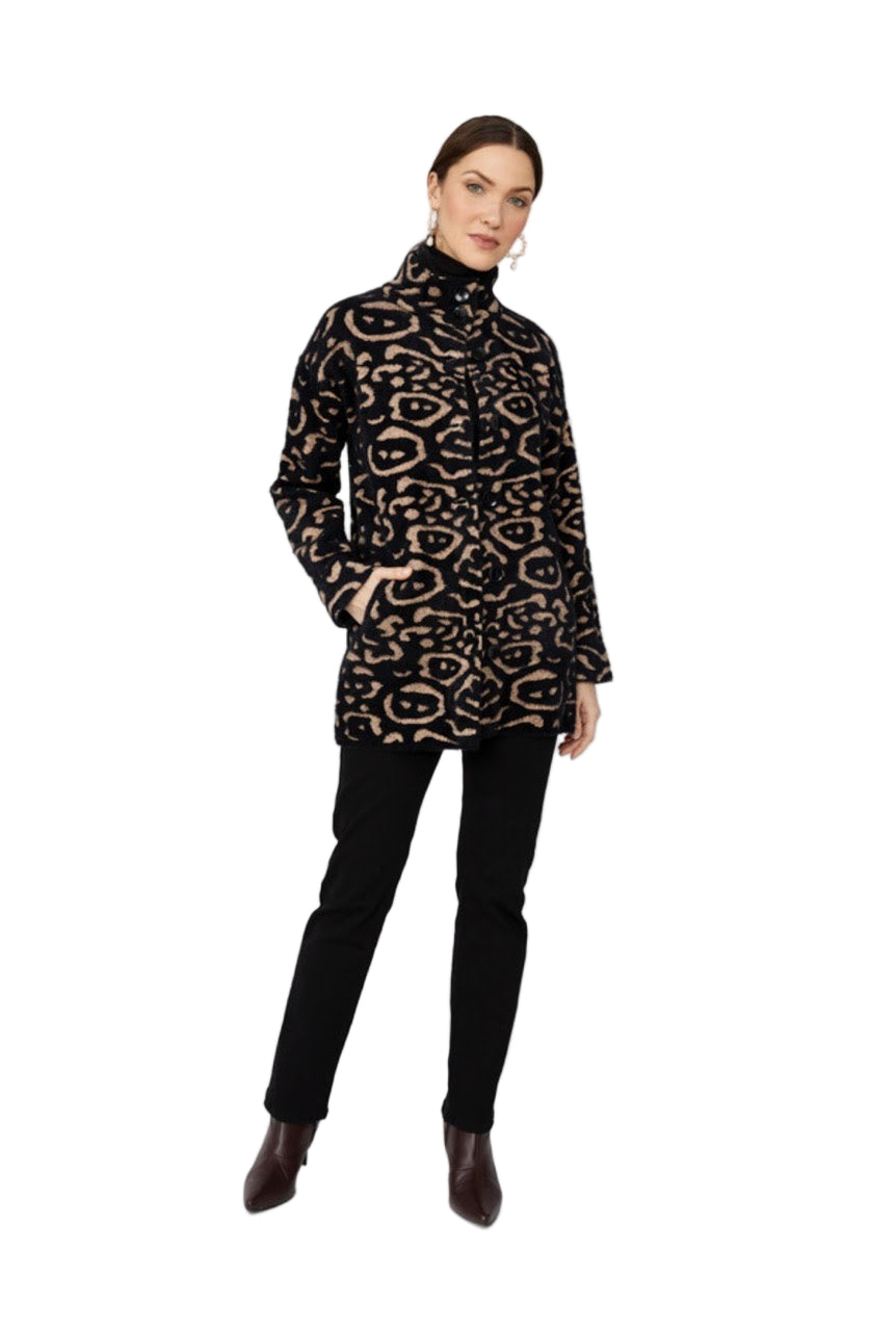 Wrap yourself in the unparalleled comfort and style of Frank Lyman's latest creation. This hip-length, regular-fit top showcases a chic animal print, making it perfect for casual winter occasions. The high-neck design, long straight sleeves, and functional zipper closure, pockets, and buttons combine practicality with flair. Ideal for everyday wear, this versatile piece effortlessly enhances your wardrobe.