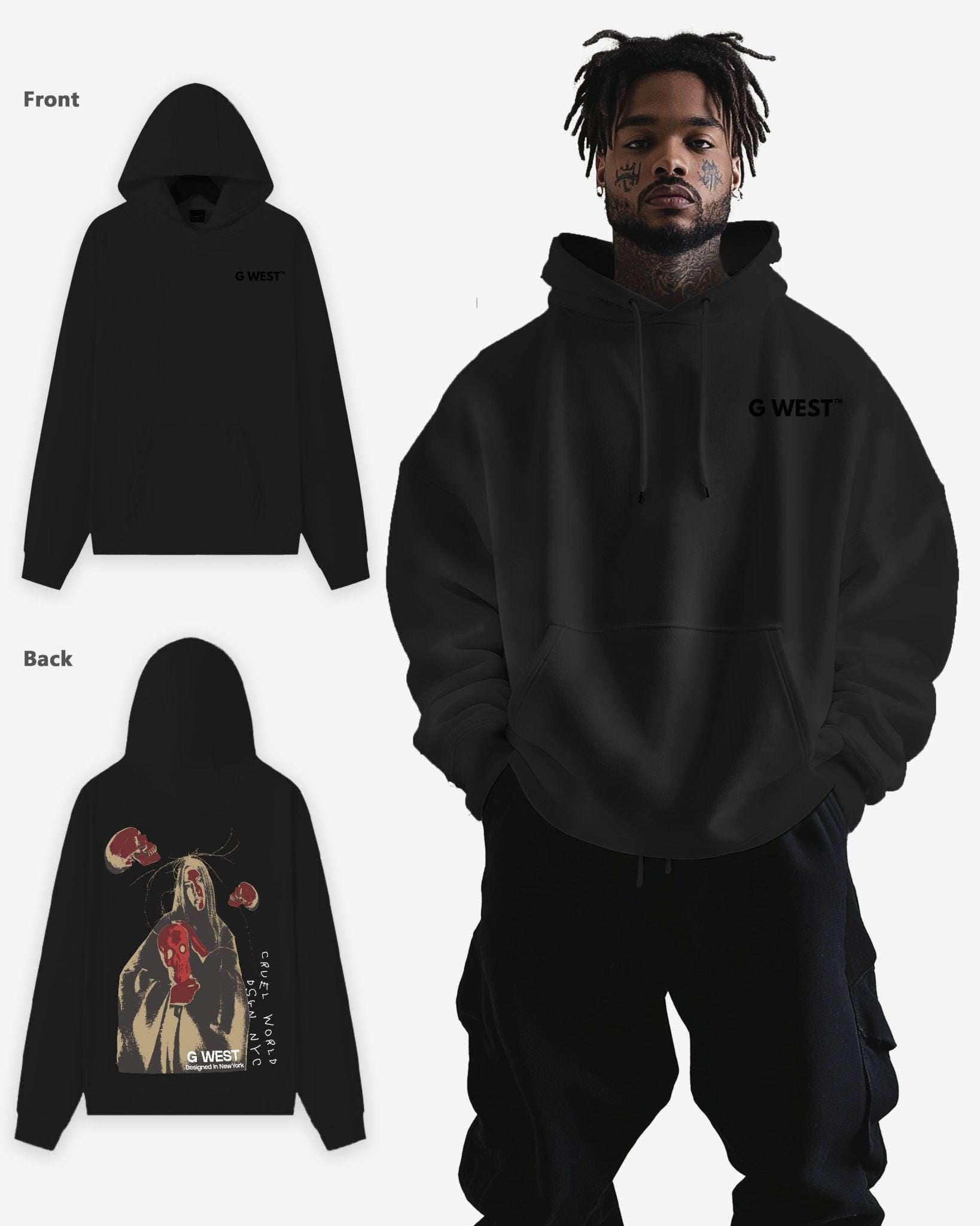 G West Red Skull Heavy Premium Oversized Hoodie ‐ Black / XXL