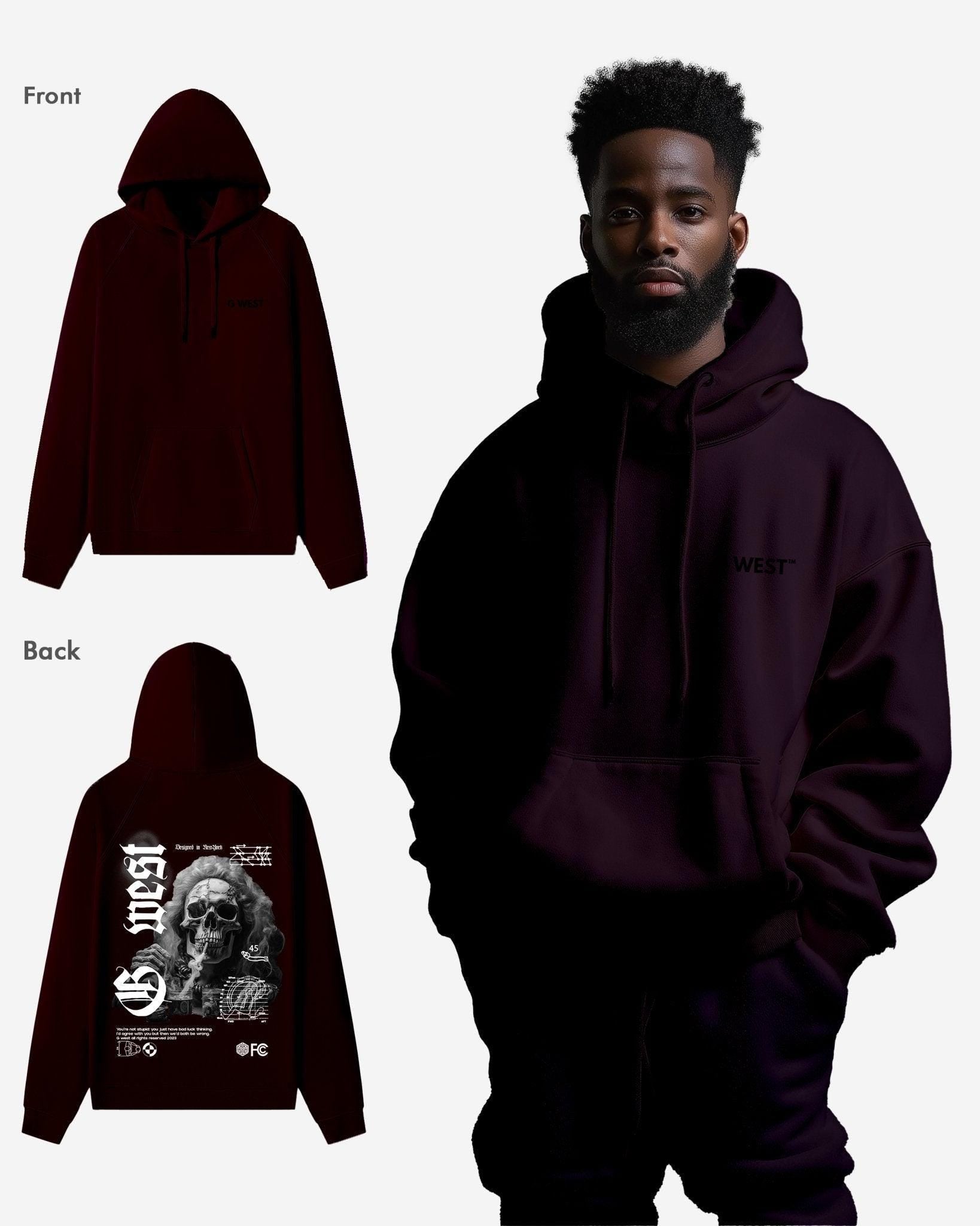 G West Smoke Skull Heavy Premium Hoodie ‐ Plum / 2XL