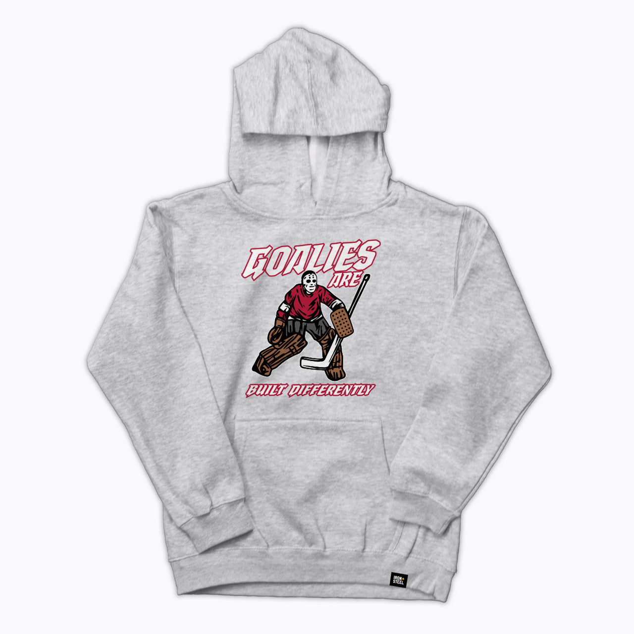 Goalies Are Built Differently Youth Hoodie ‐ Ash / L