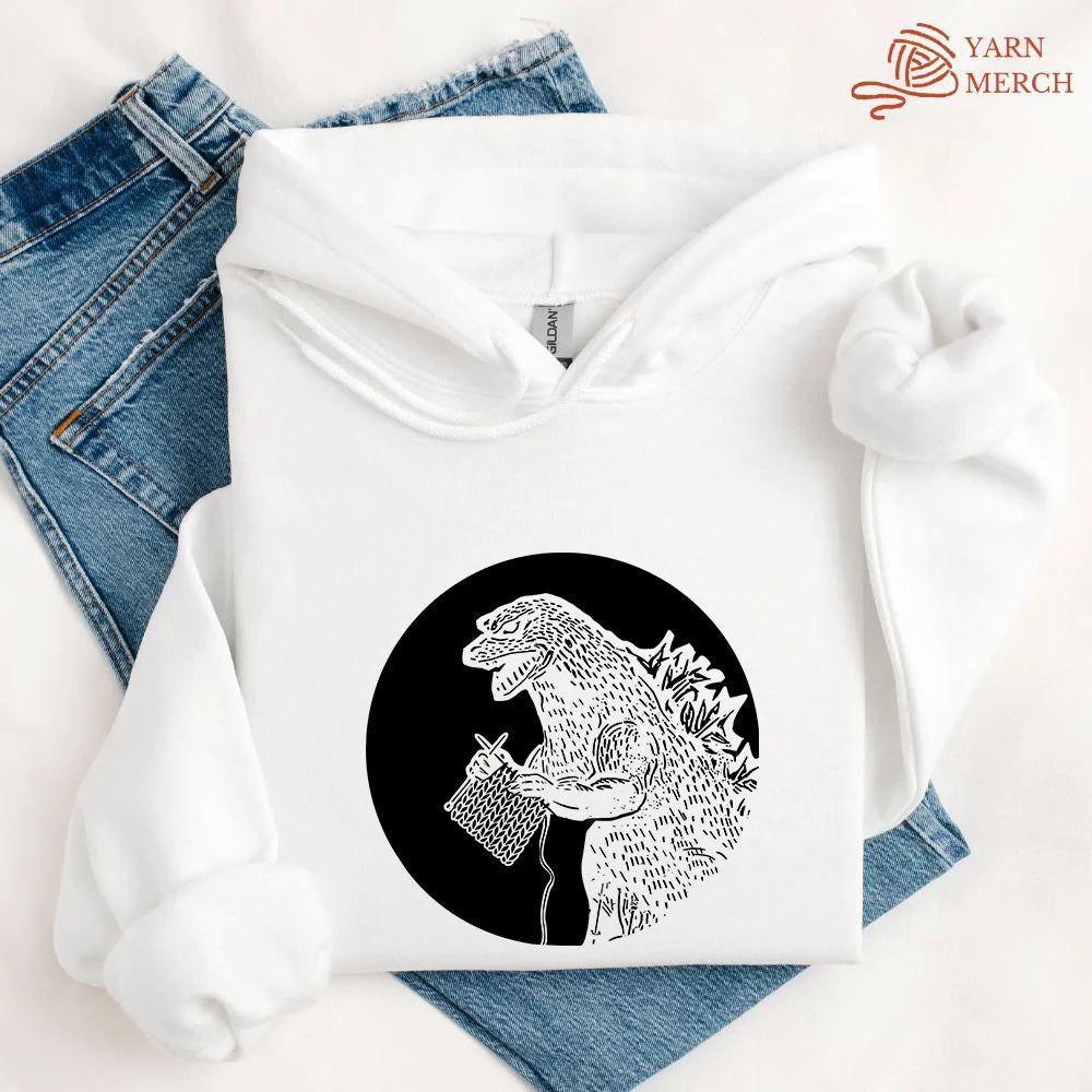 Unleash your inner beast of creativity with this sporty grey hoodie featuring the mighty Knitzilla—towering, fierce, and totally focused on their next big project. With needles in claw and yarn on deck, this design is a hilarious mashup of cozy and colossal.