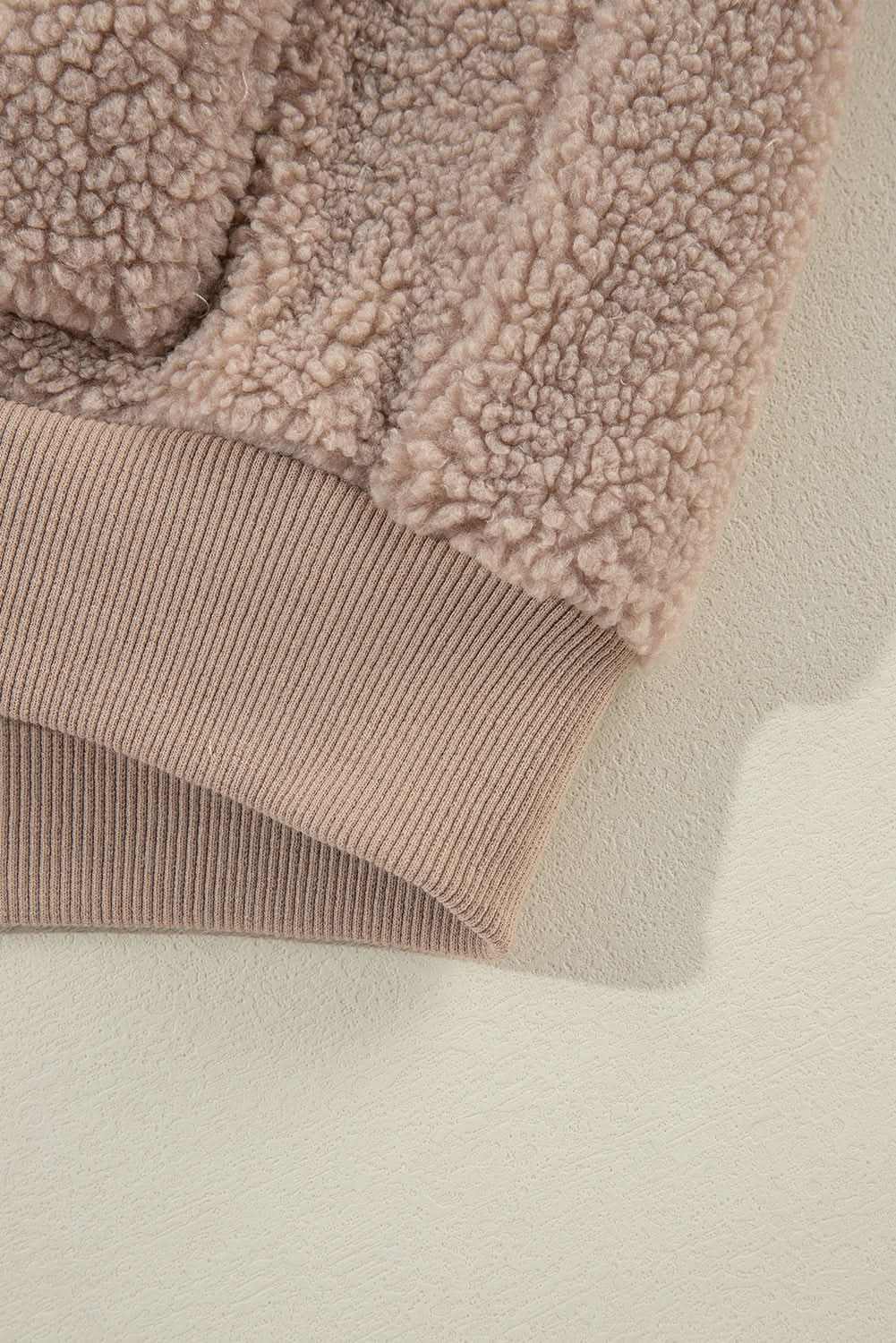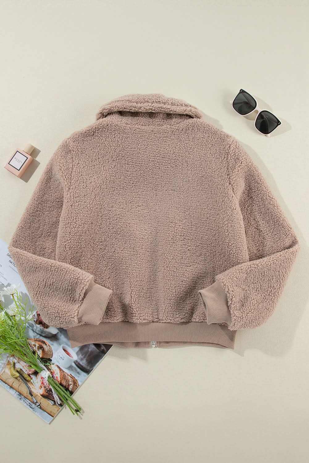 Light French Beige Zipper Pocketed Winter Fuzzy Jacket