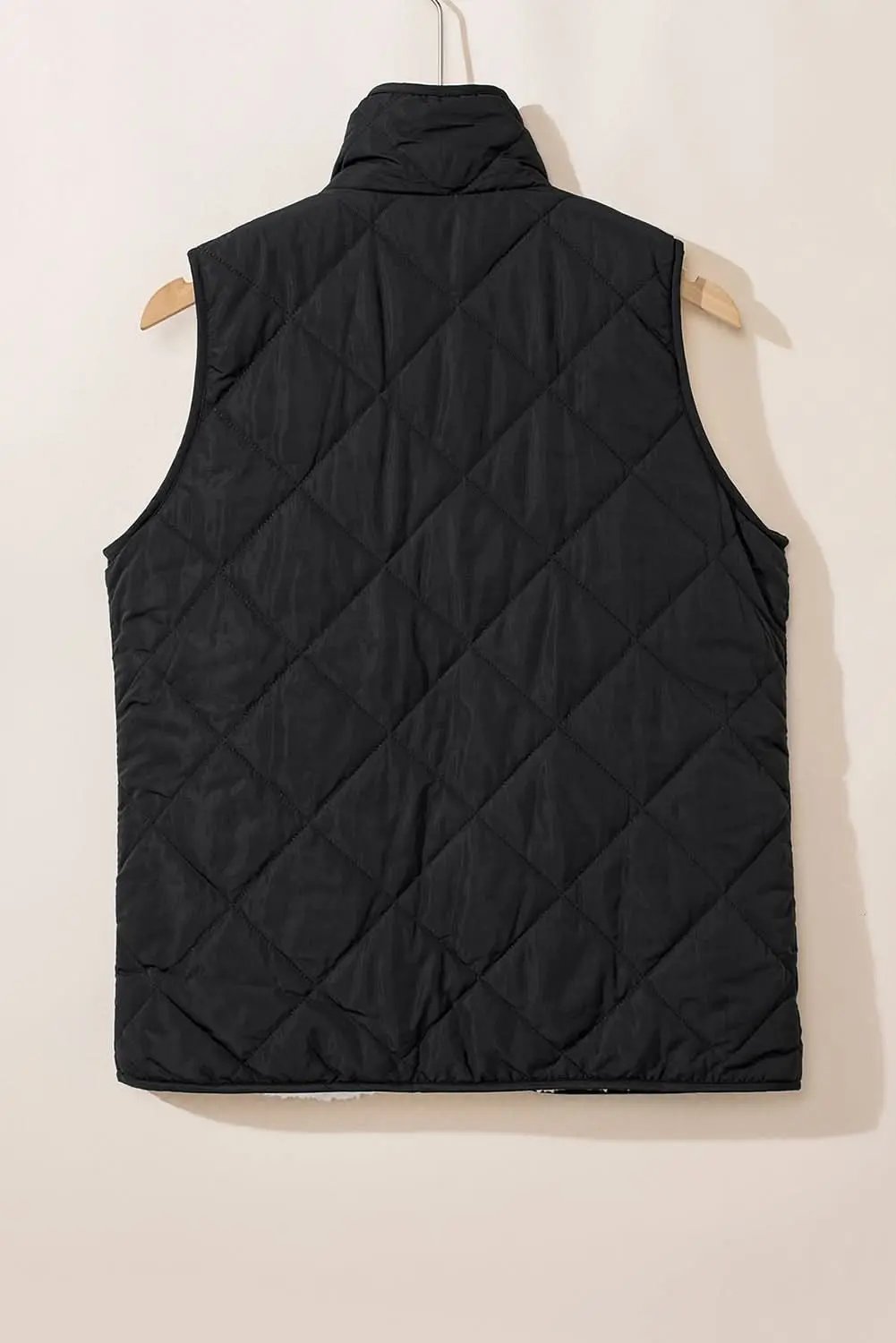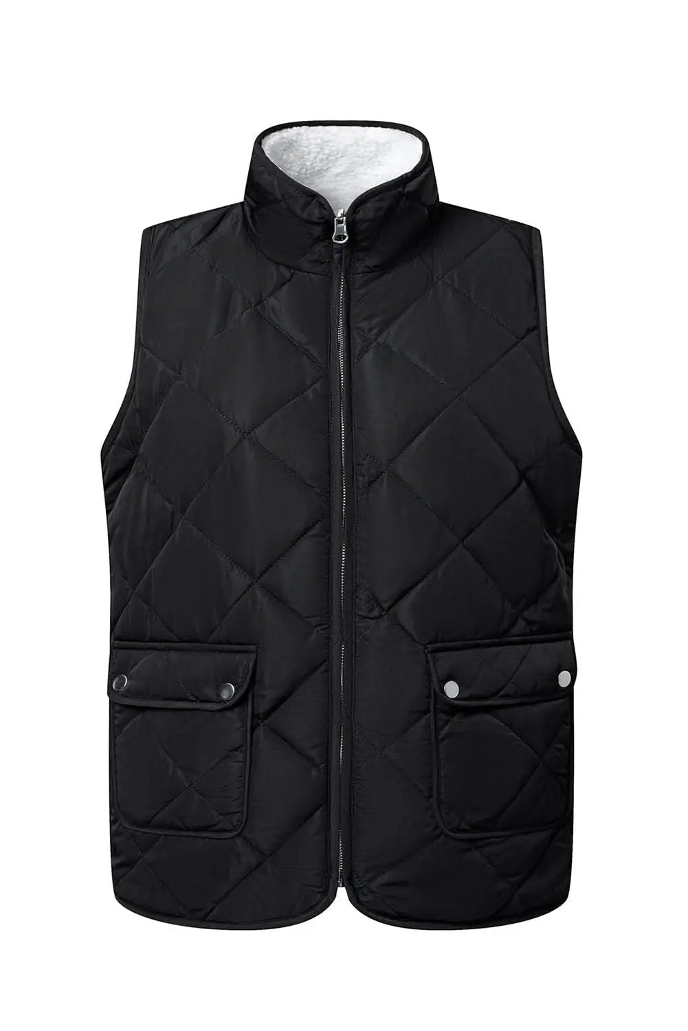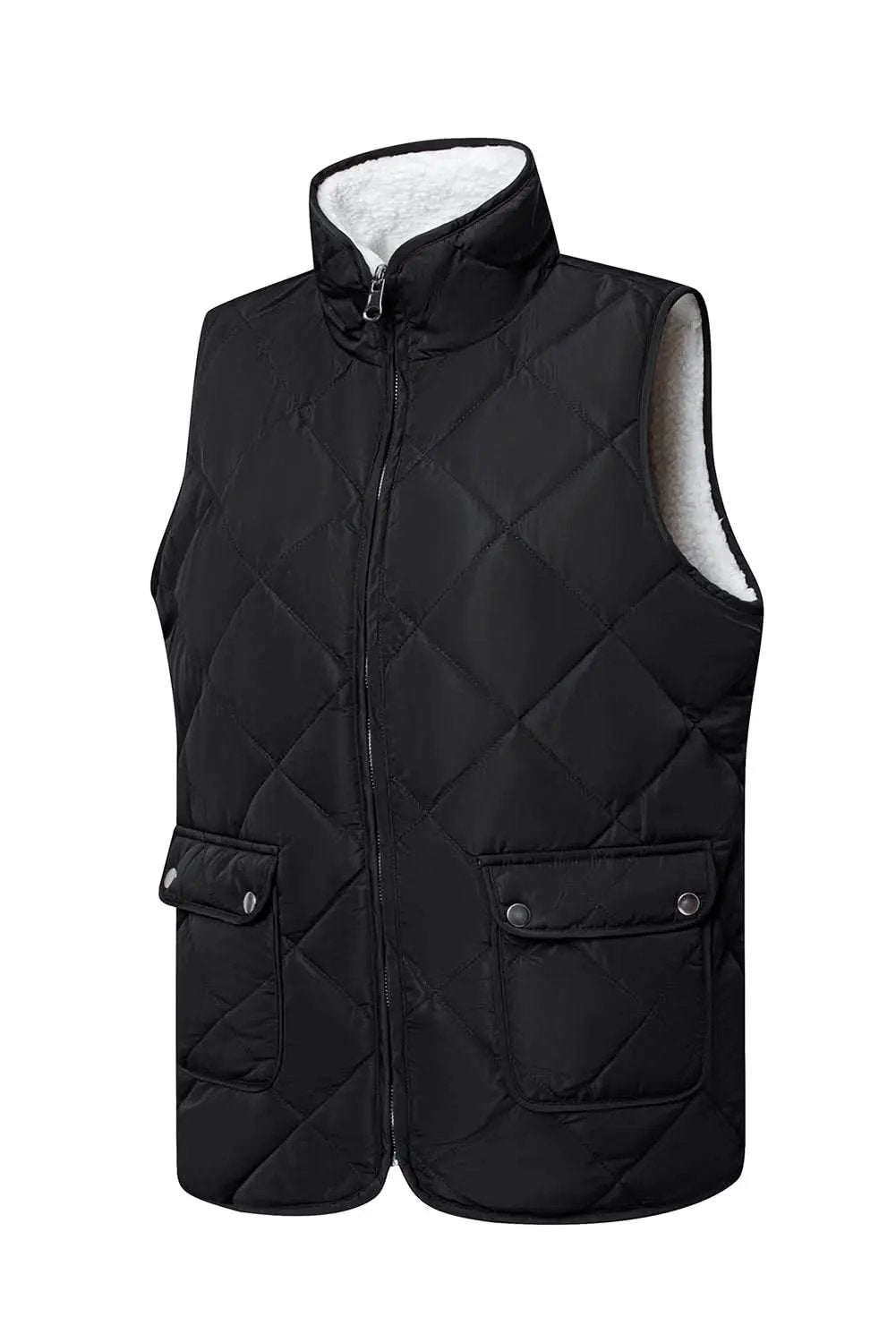 Black Fleece Lined Quilted Zip Up Vest Coat