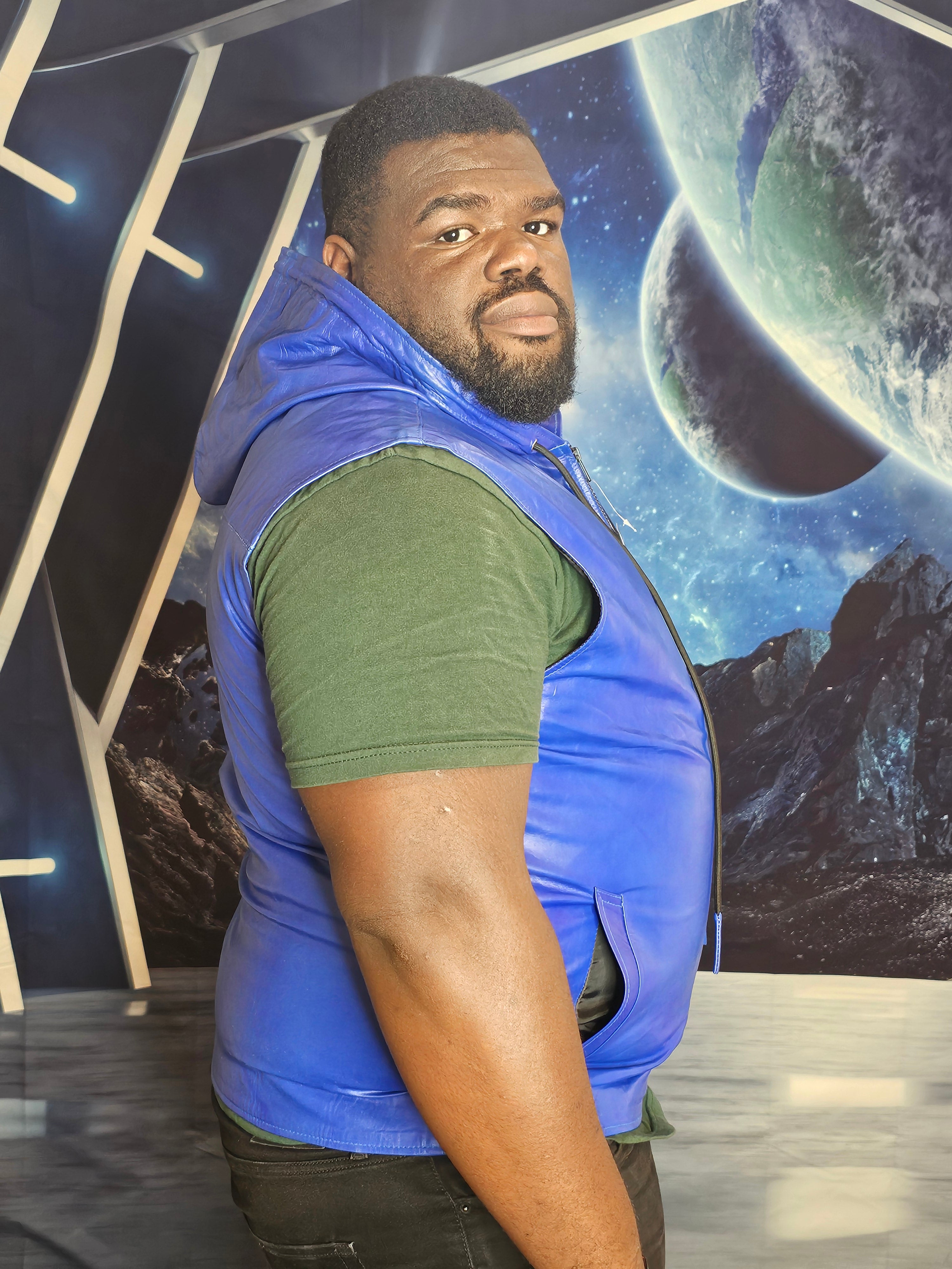 OnF Leather Hoodie in Blue ‐ 7X-Large