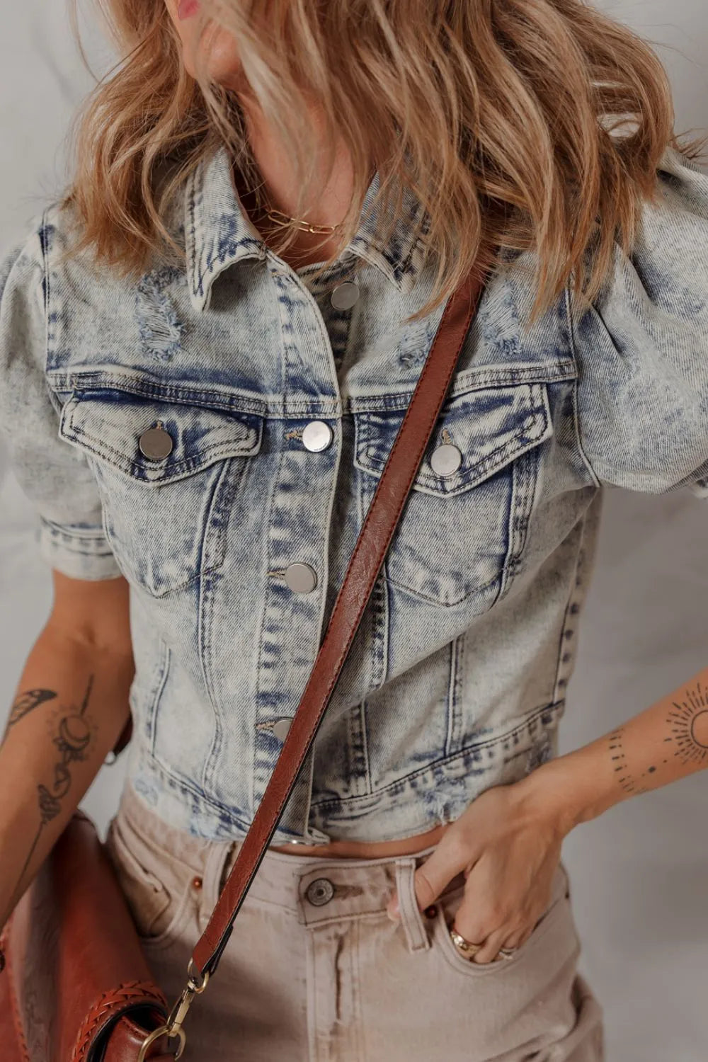 Turn up the edge and volume with our Puff & Polish Acid Wash Denim Jacket—where vintage vibes meet feminine flair. This cropped cutie features puff sleeves, bold chest pockets, and a button-down front, all wrapped in a washed denim finish that screams effortlessly cool. Made from a comfy cotton-poly blend, it's structured with no stretch but full of style.