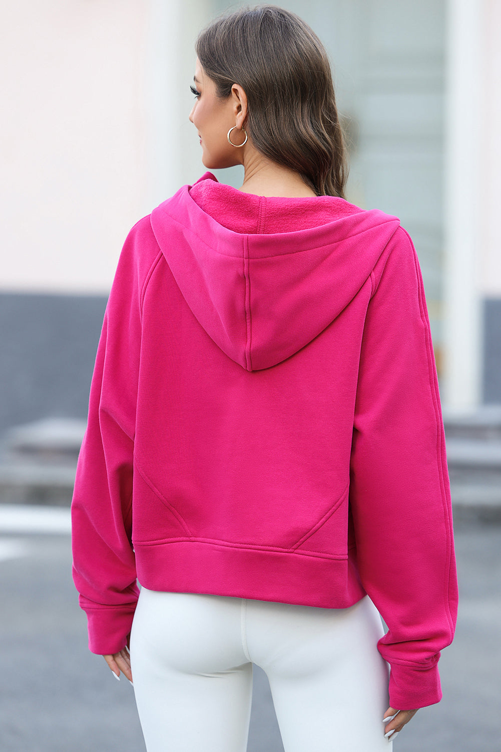 Rosie Half Zipper Pocket Pullover Hoodie ‐ Rose Red / S - 4/6