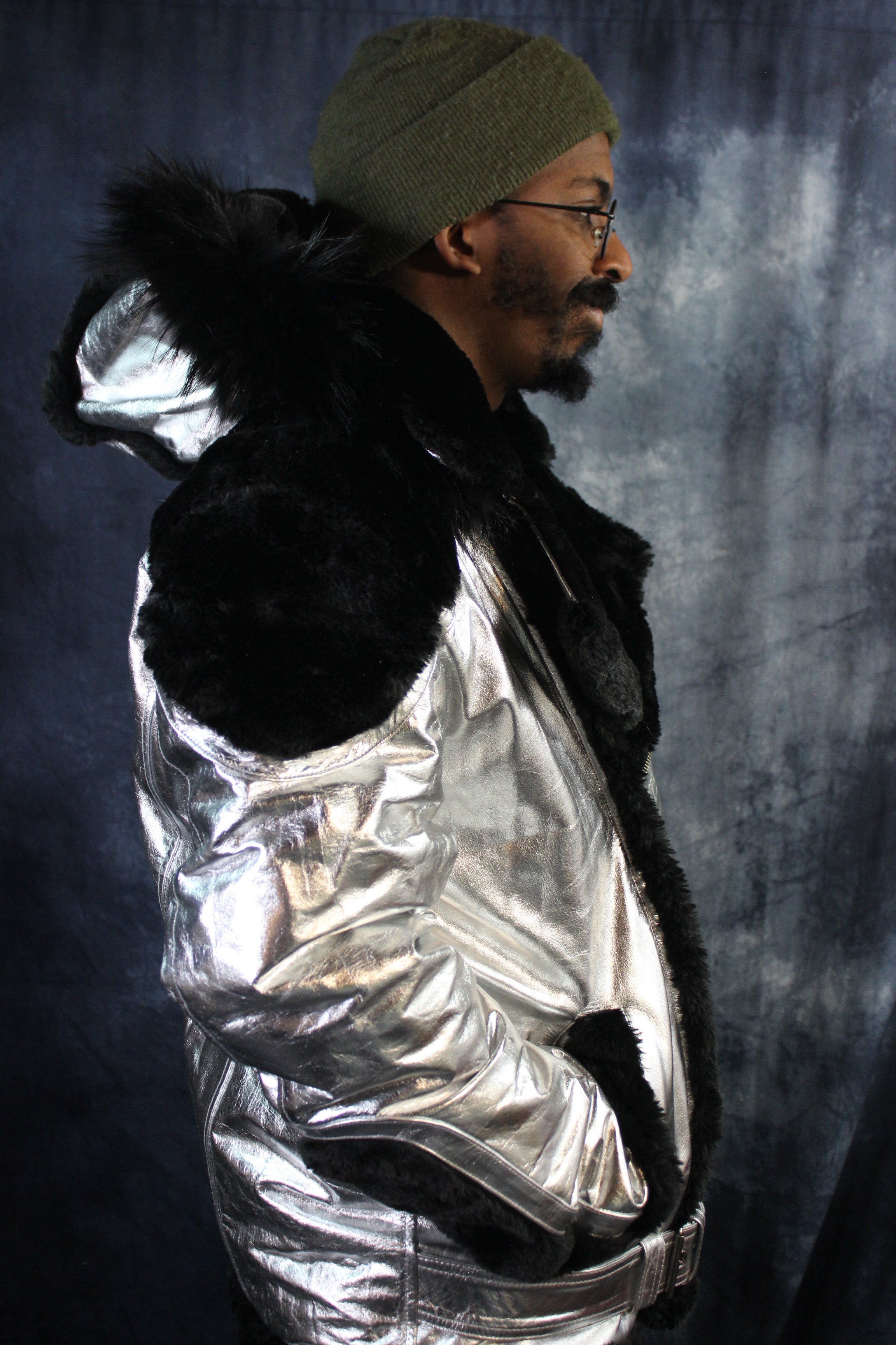 Silver Leather and Fur Jacket by Otter and The Fox ‐ 7XL