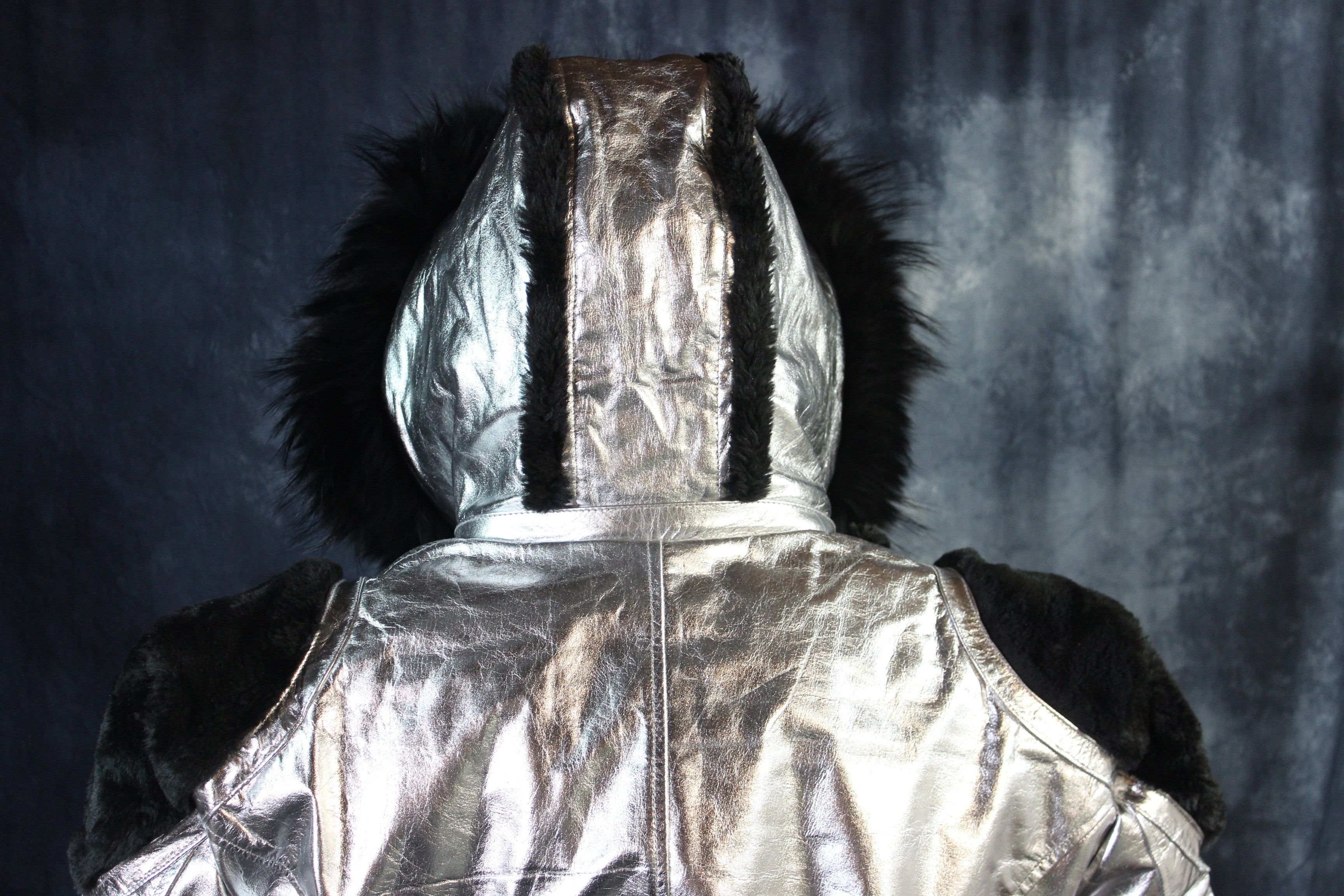 Silver Leather and Fur Jacket by Otter and The Fox ‐ 5XL