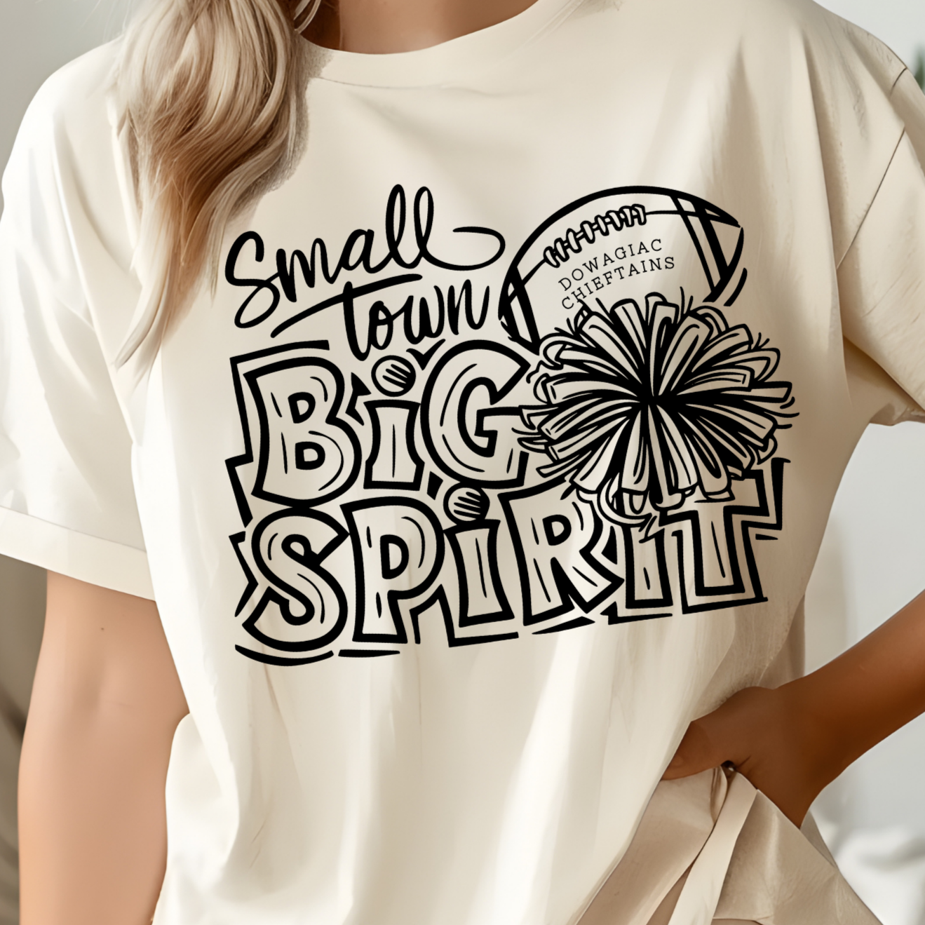 Small Town Big Spirit Cheer/football Tshirt - Crewneck - Hoodie ‐ Medium / OFF WHITE / Tshirt