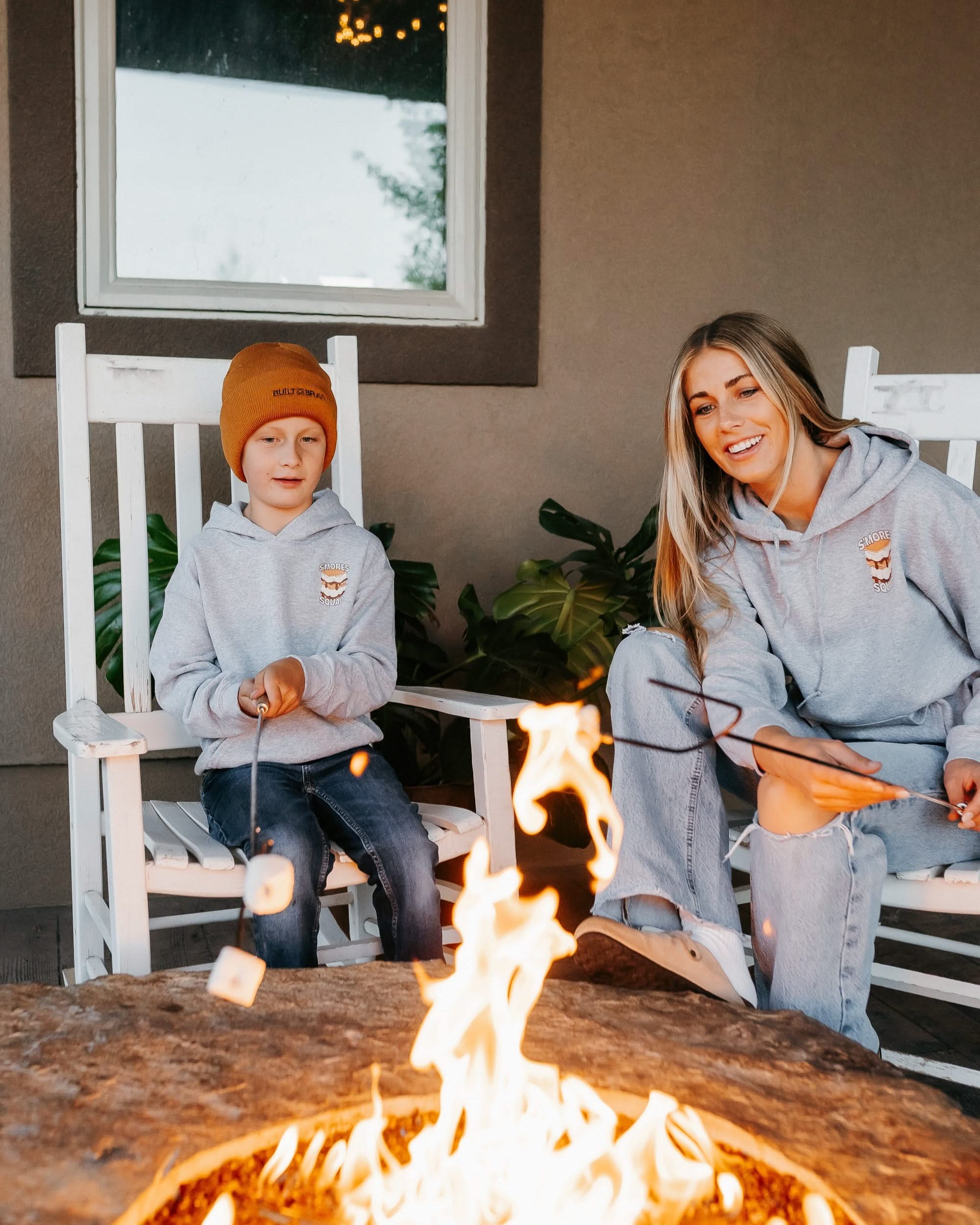 S'mores Squad/The Perfect S'more (pf&b) - Gray BASIC Fleece Child HOODIE ‐ YL