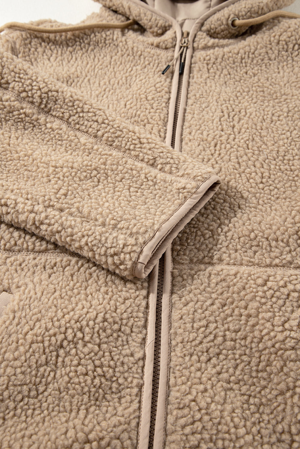 Solid Fleece Zip-Up Drawstring Pocketed Hooded Jacket ‐ Beige / L