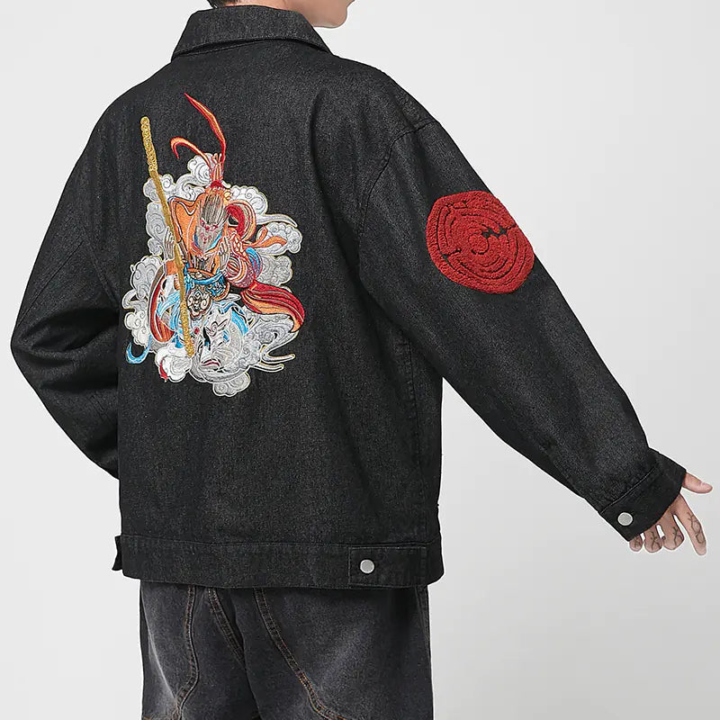 Featuring an exquisite embroidery design and a classic collar, this jacket adds a unique touch to your outfit while ensuring a relaxed fit. Whether you pair it with jeans for a casual look or dress it up with chinos, this jacket is bound to turn heads.