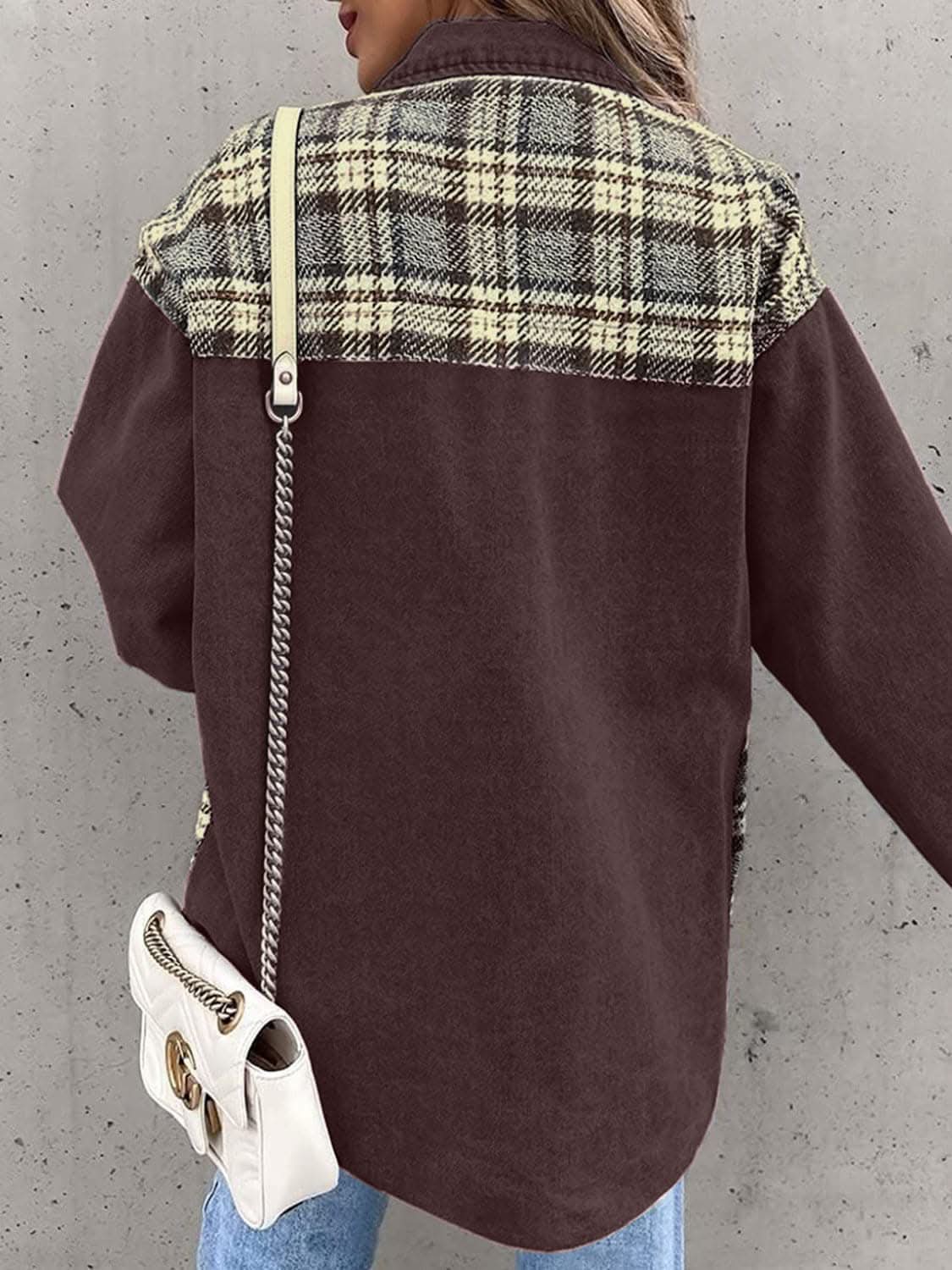 Plaid Oversized Cotton Jacket ‐ Brown / S