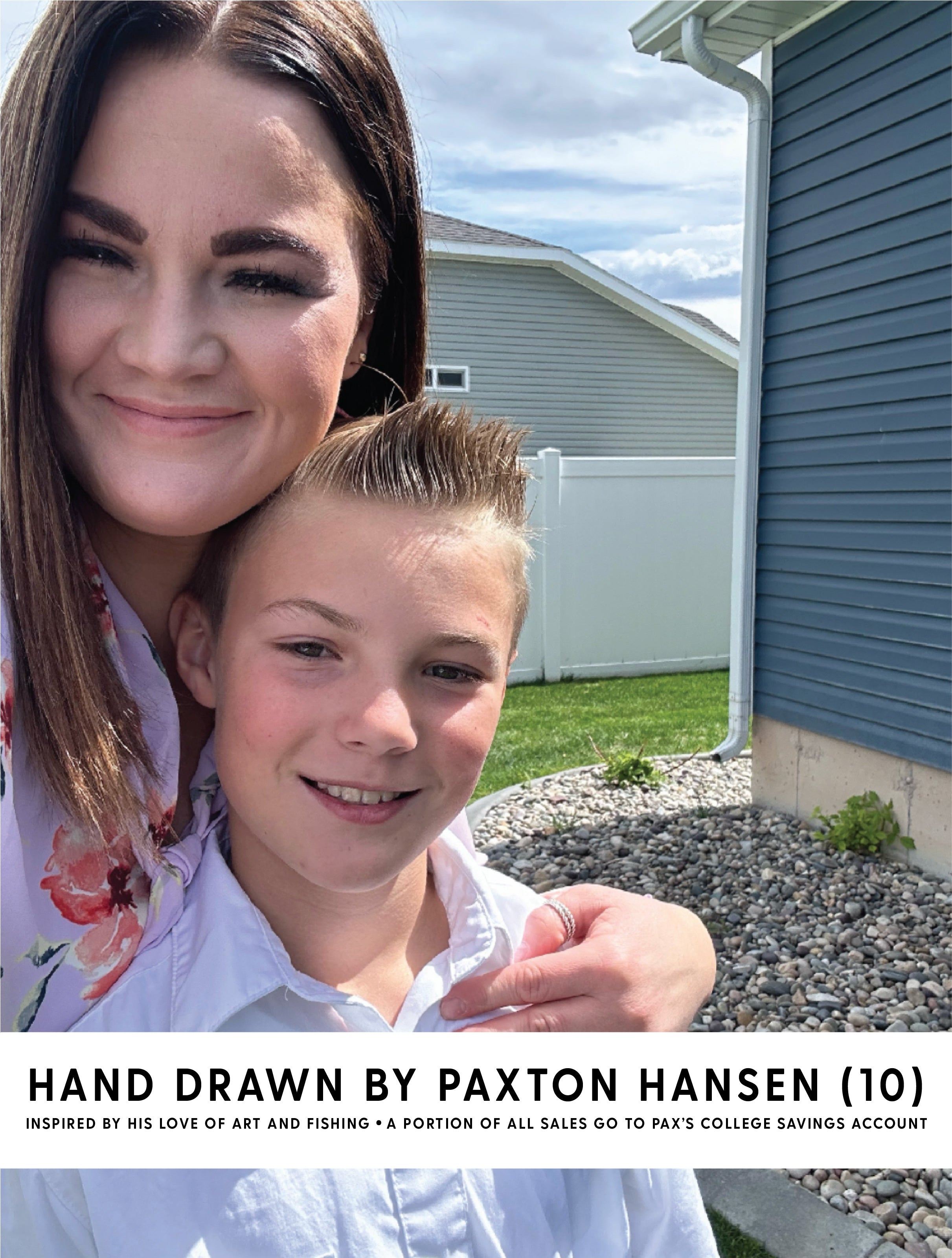 Paxton Hansen's passion for drawing began when he was four years old. After many hours of practice he has mastered the art of sketching dinosaurs, fish, and other creatures. He spends about 2-3 hours each day drawing in hopes of fulfilling his dream of being an artist one day. Profits from Paxton's artwork go toward his college fund.