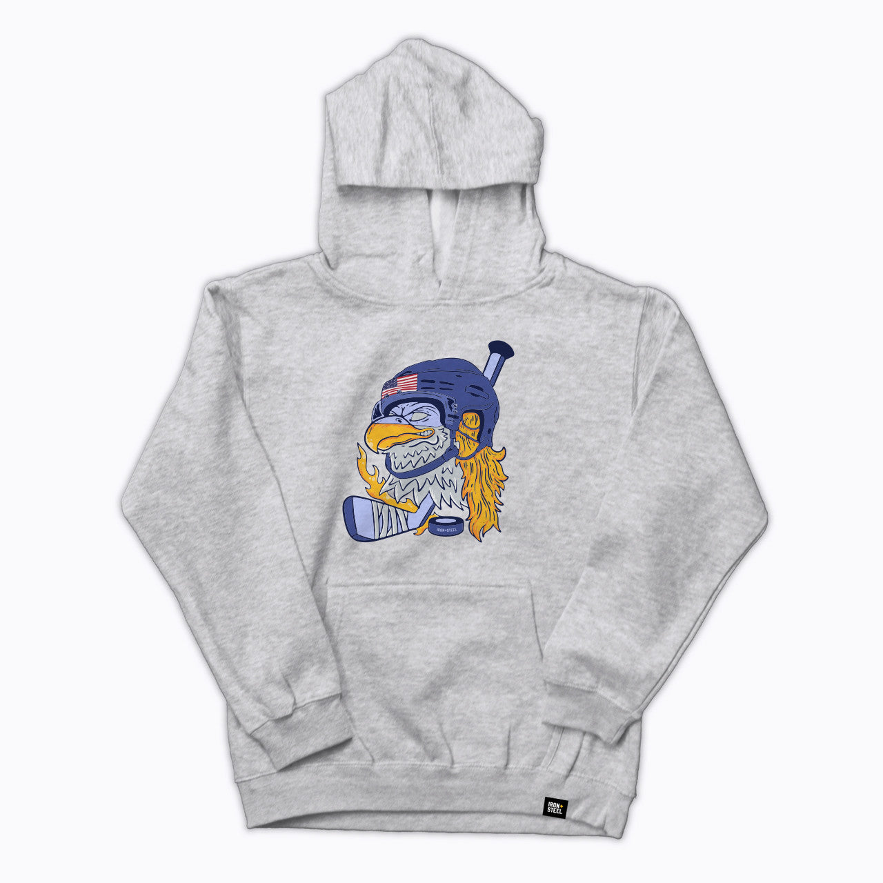 Featuring a bold bald eagle sporting a mullet, this hoodie is perfect for young hockey fans who love to stand out. Made from premium, durable materials and proudly designed and printed in the USA, it's a unique addition to any hockey wardrobe.