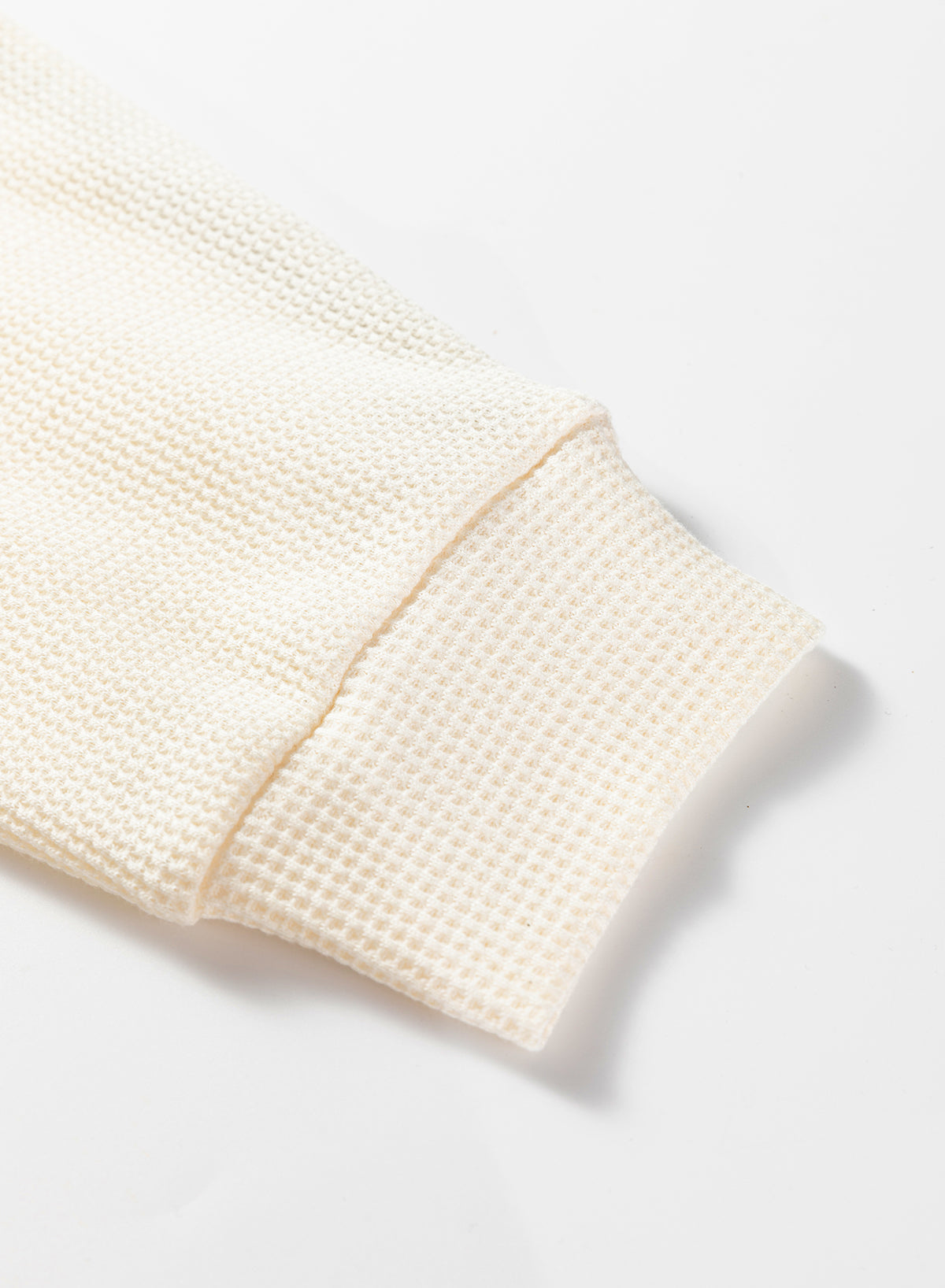 Waffle Knit Colorblock Patchwork Buttoned Hoodie ‐ Light French Beige / S