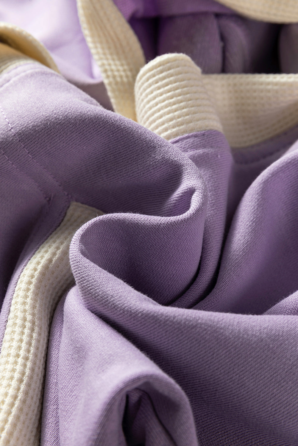 Waffle Knit Colorblock Patchwork Buttoned Hoodie ‐ Orchid Petal / M