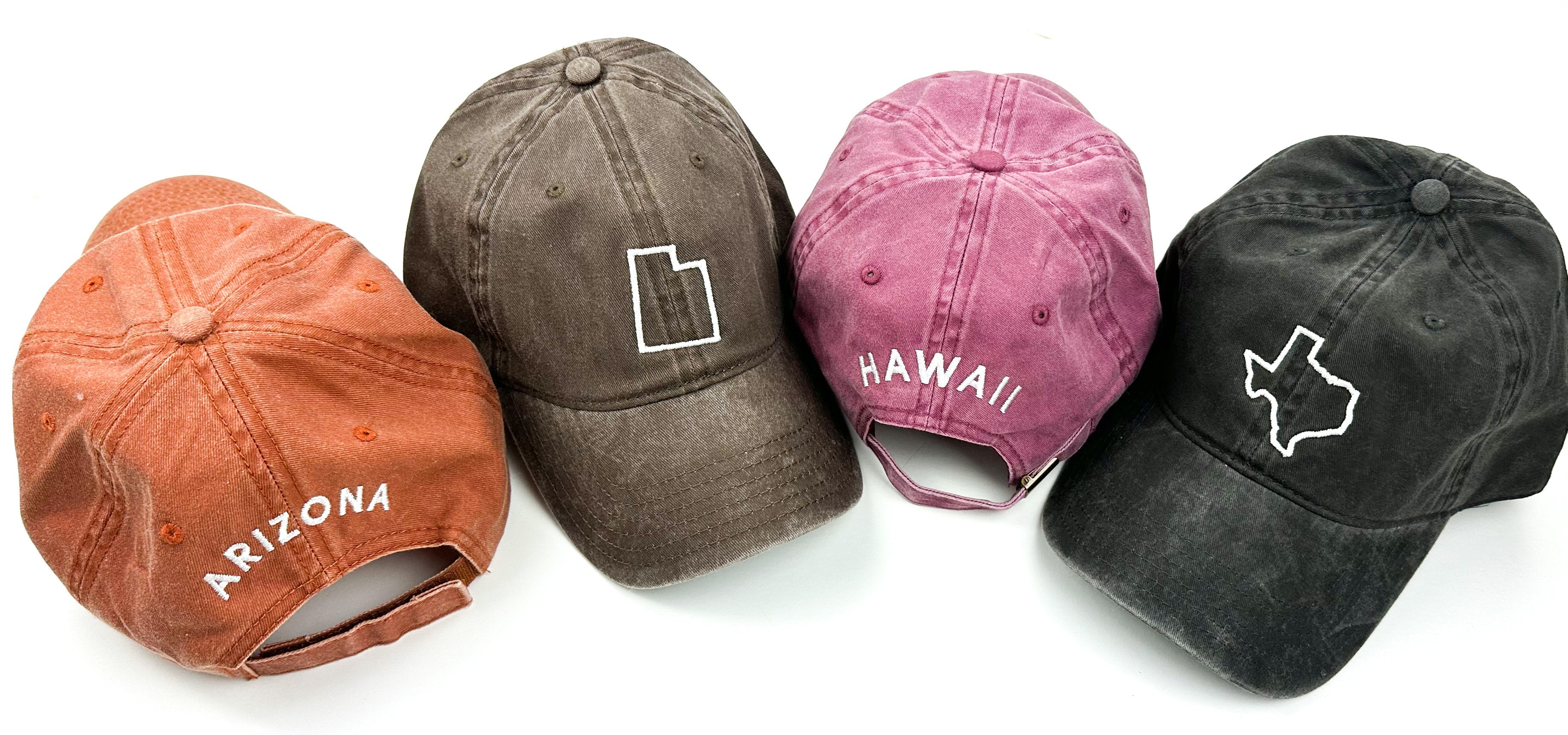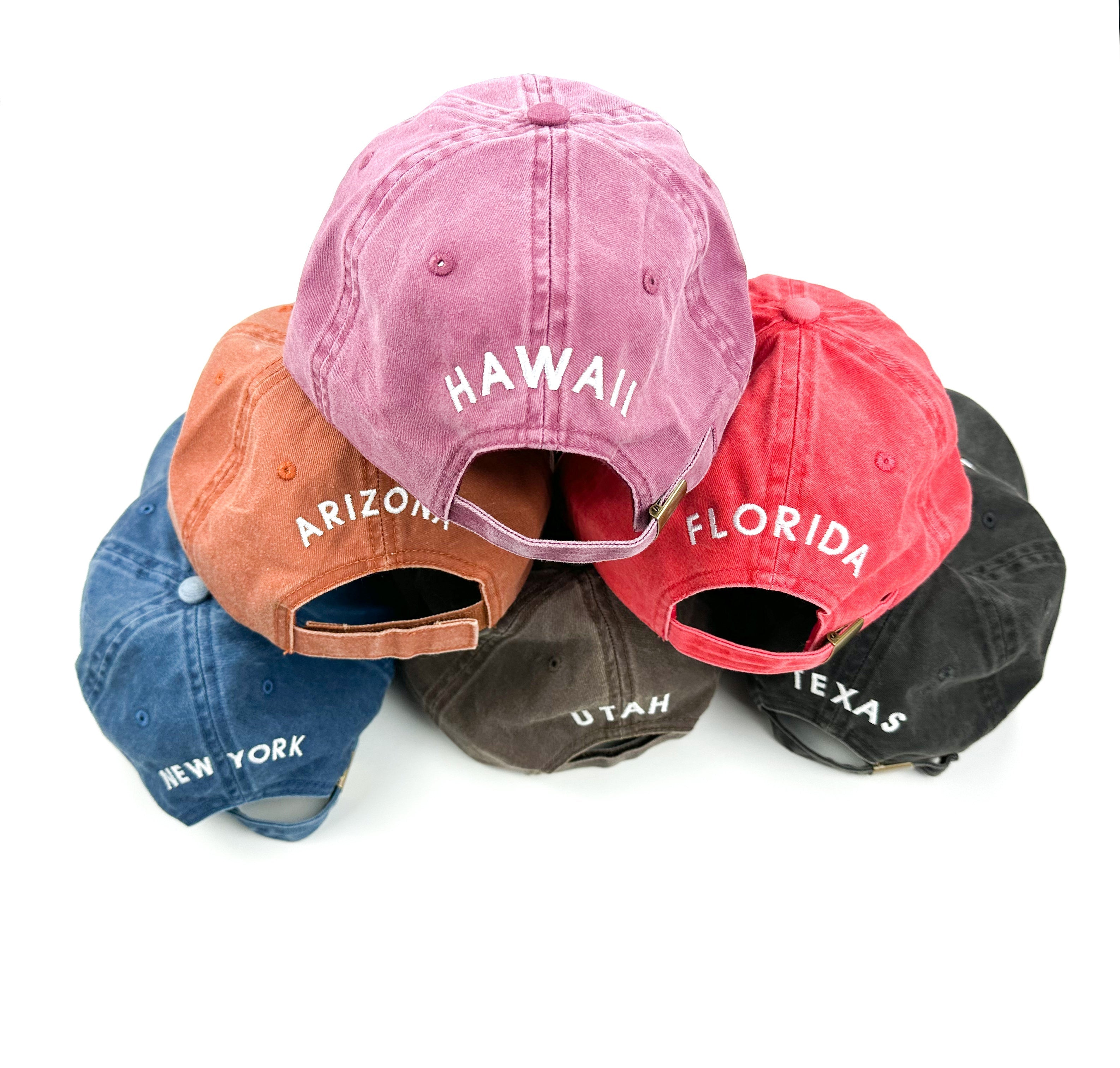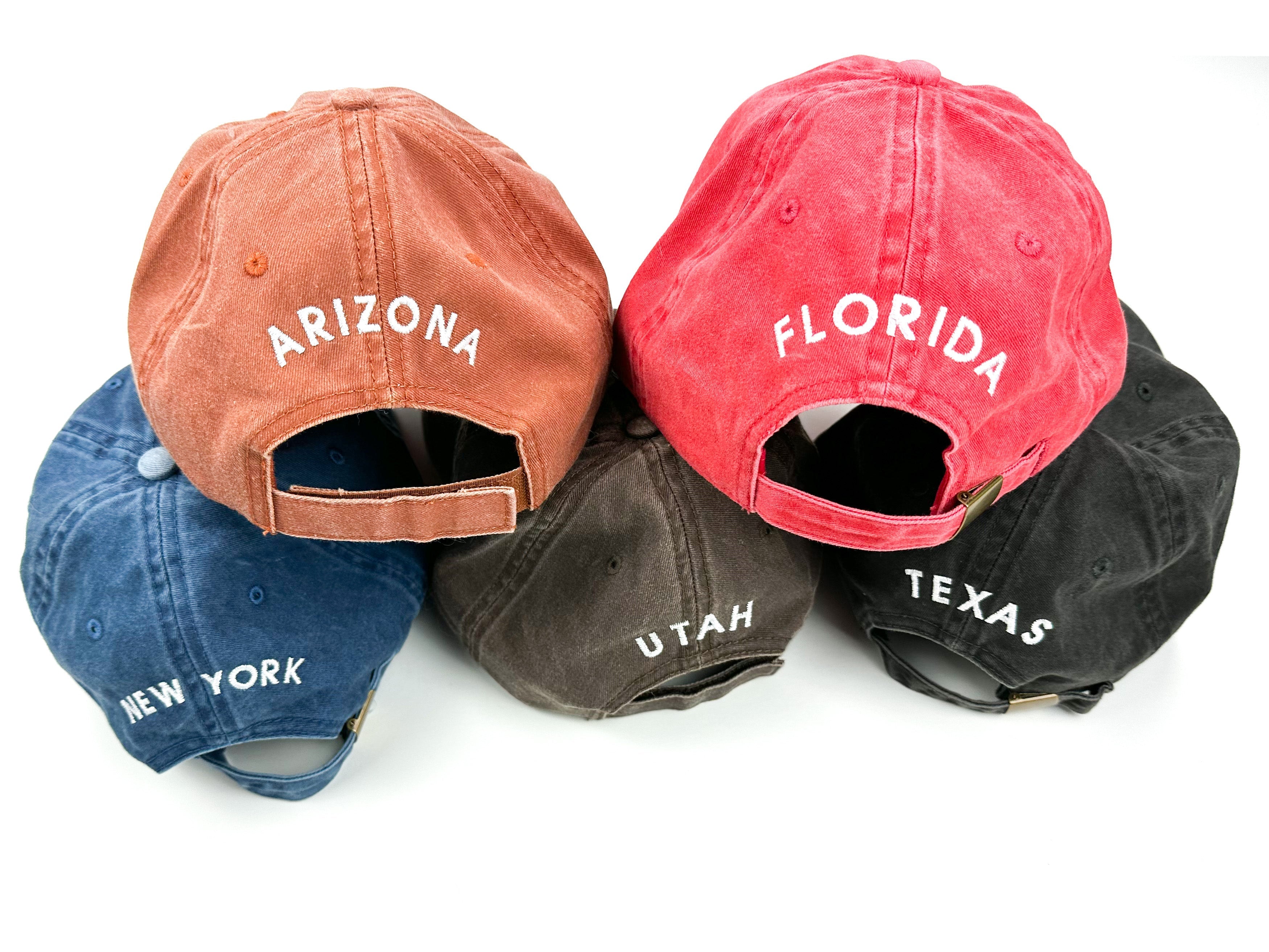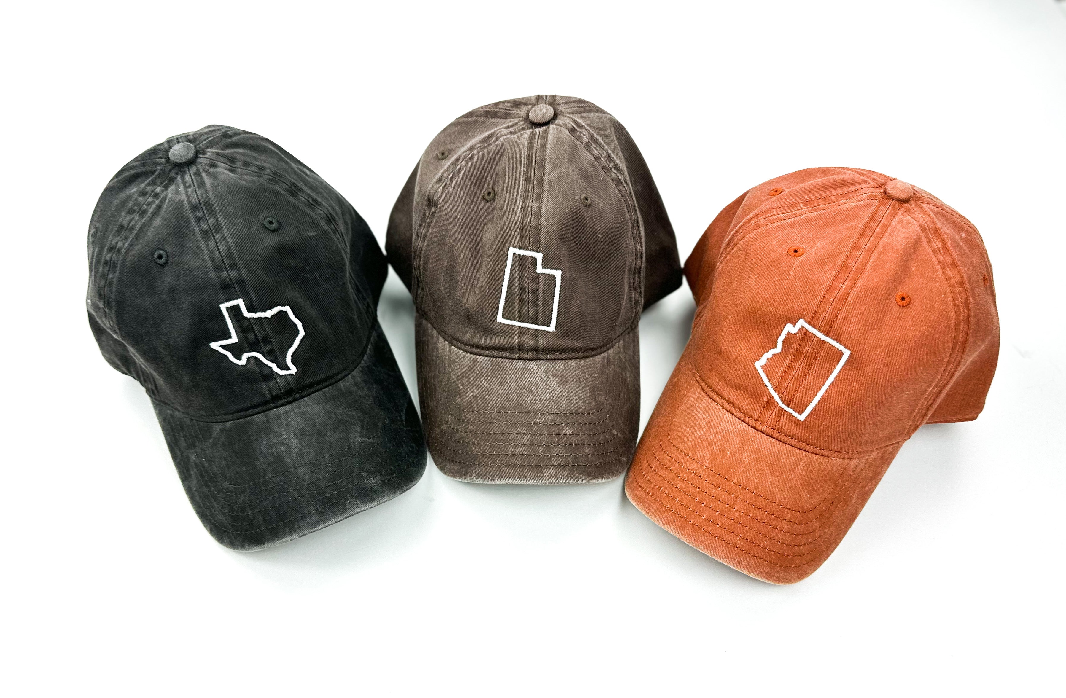50 States - Baseball Cap (state outline front - state name back / white thread)