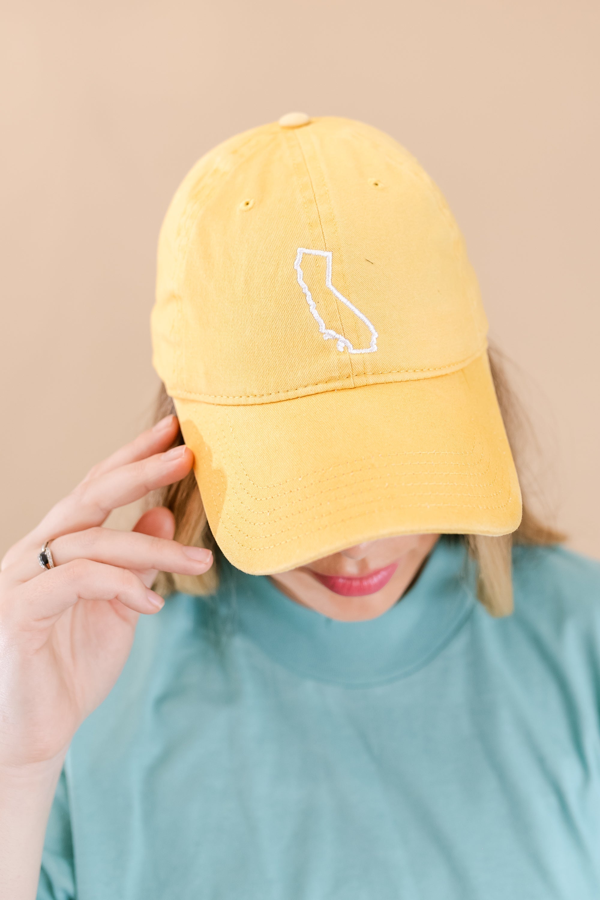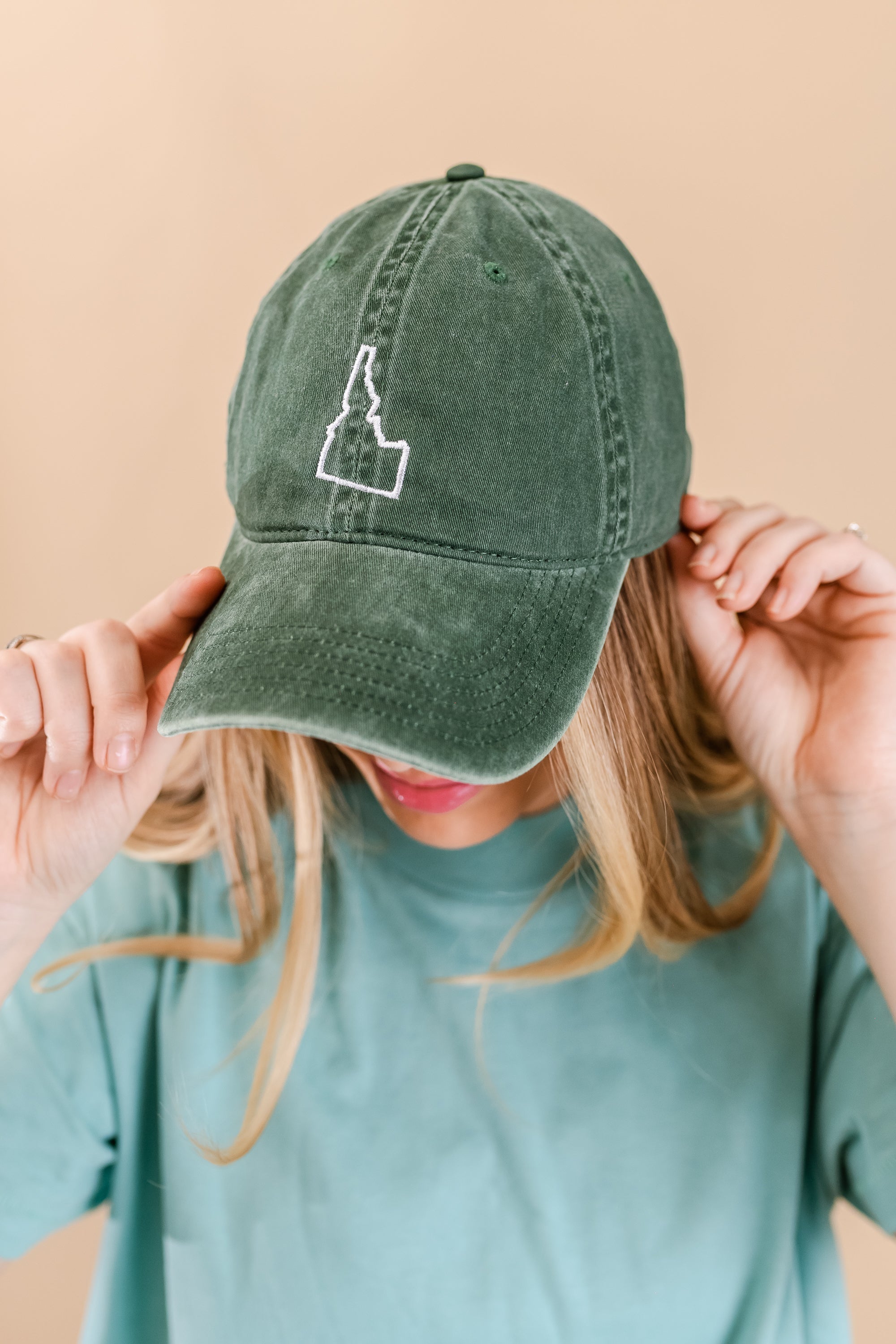 50 States - Baseball Cap (state outline front - state name back / white thread) ‐ Teal