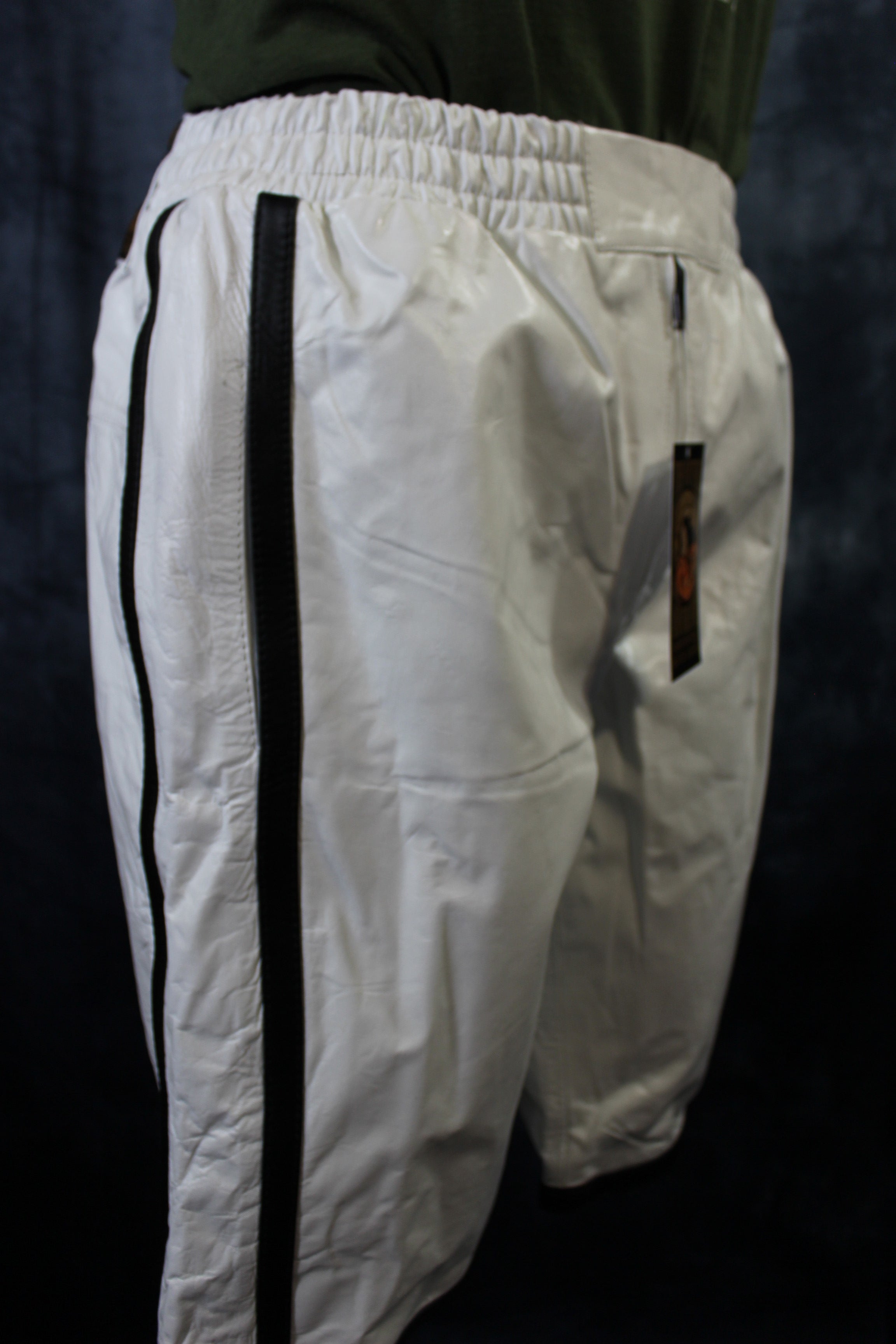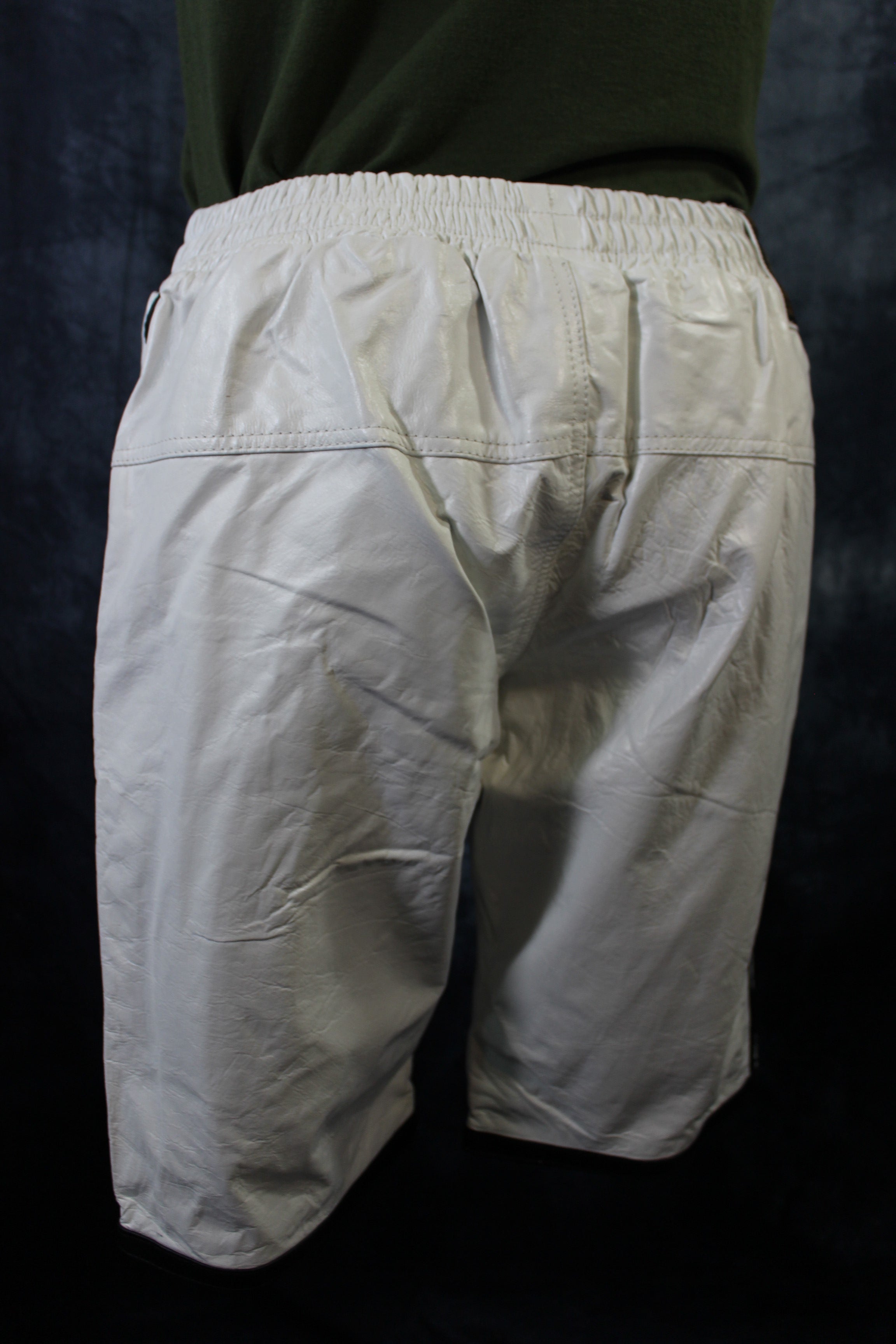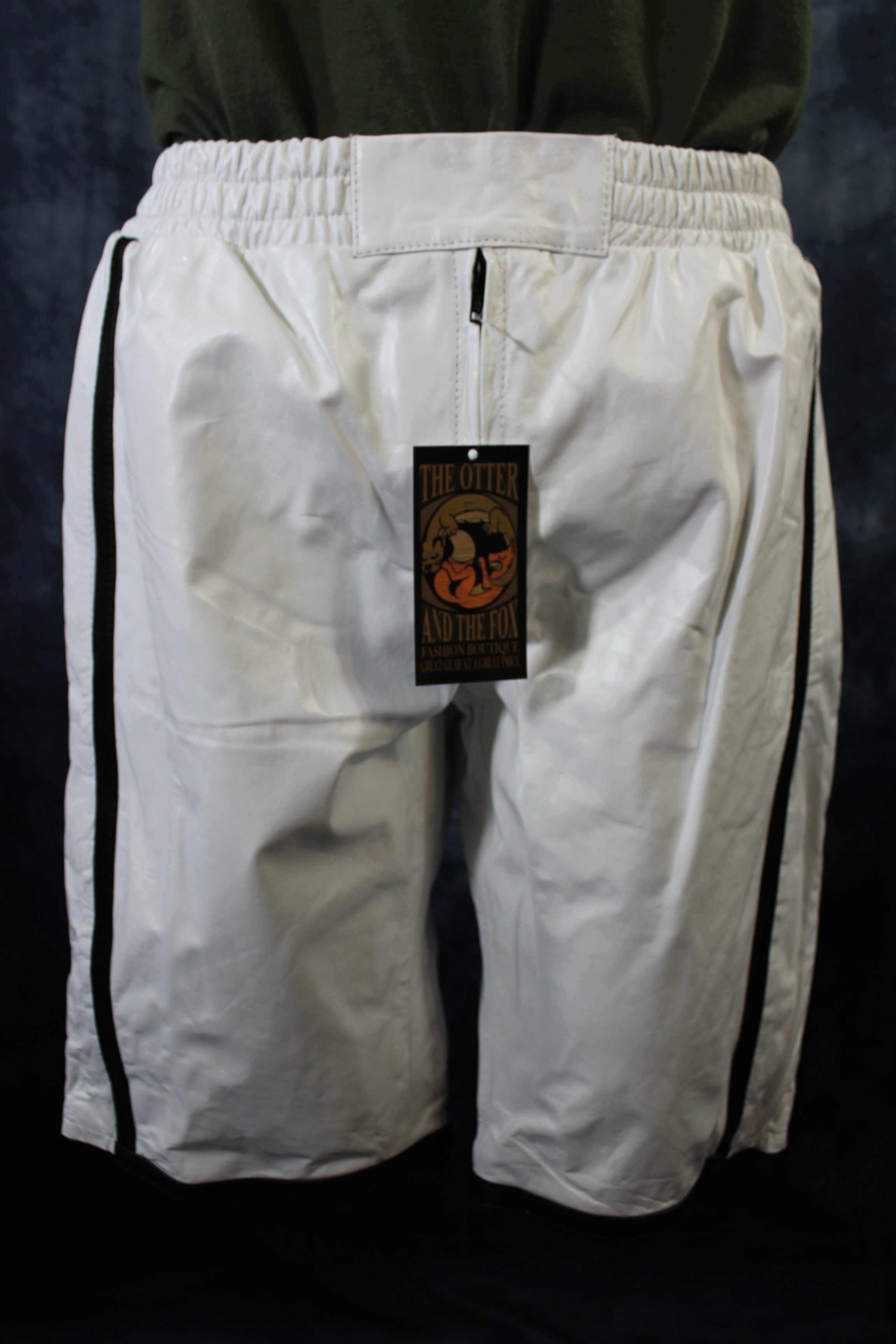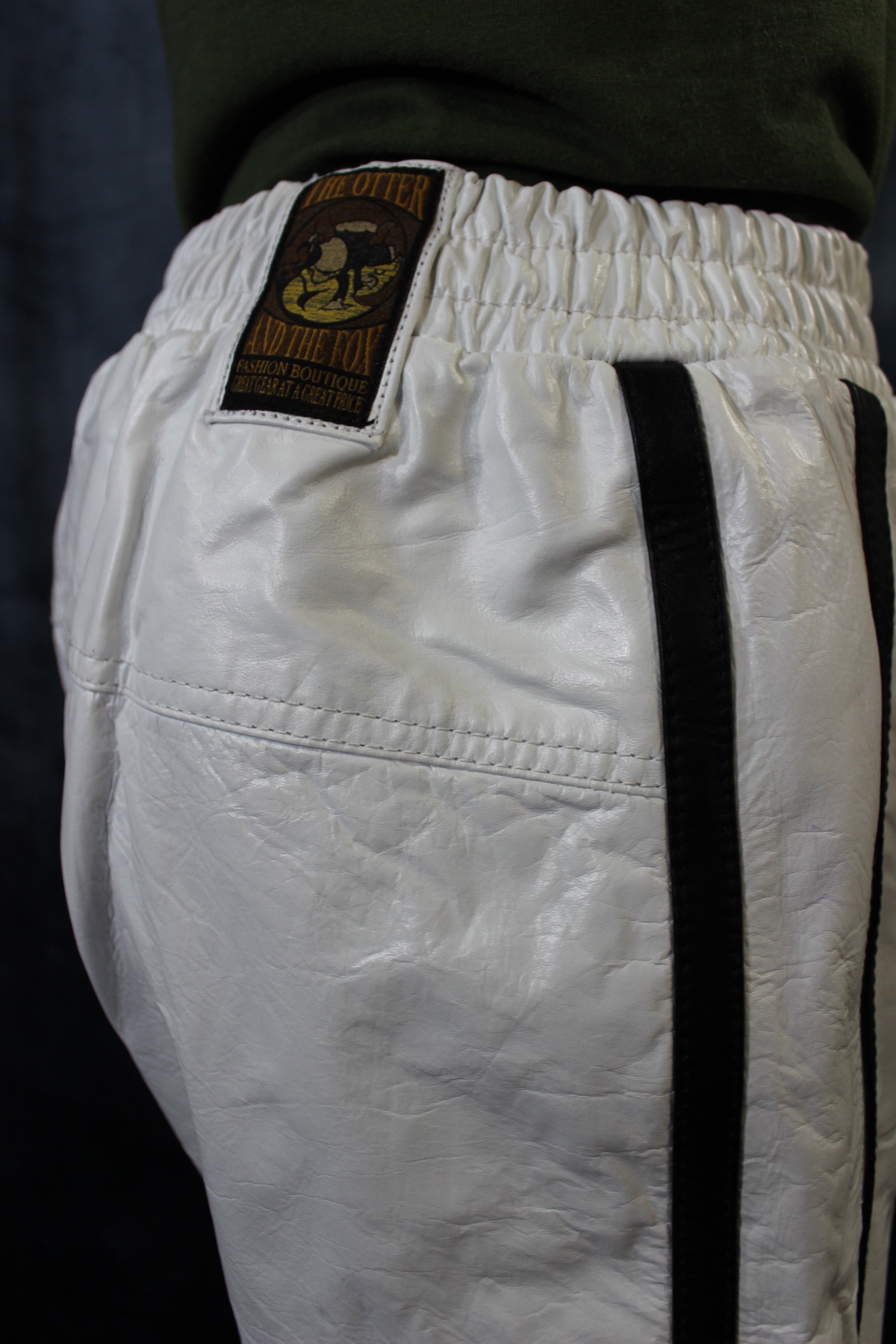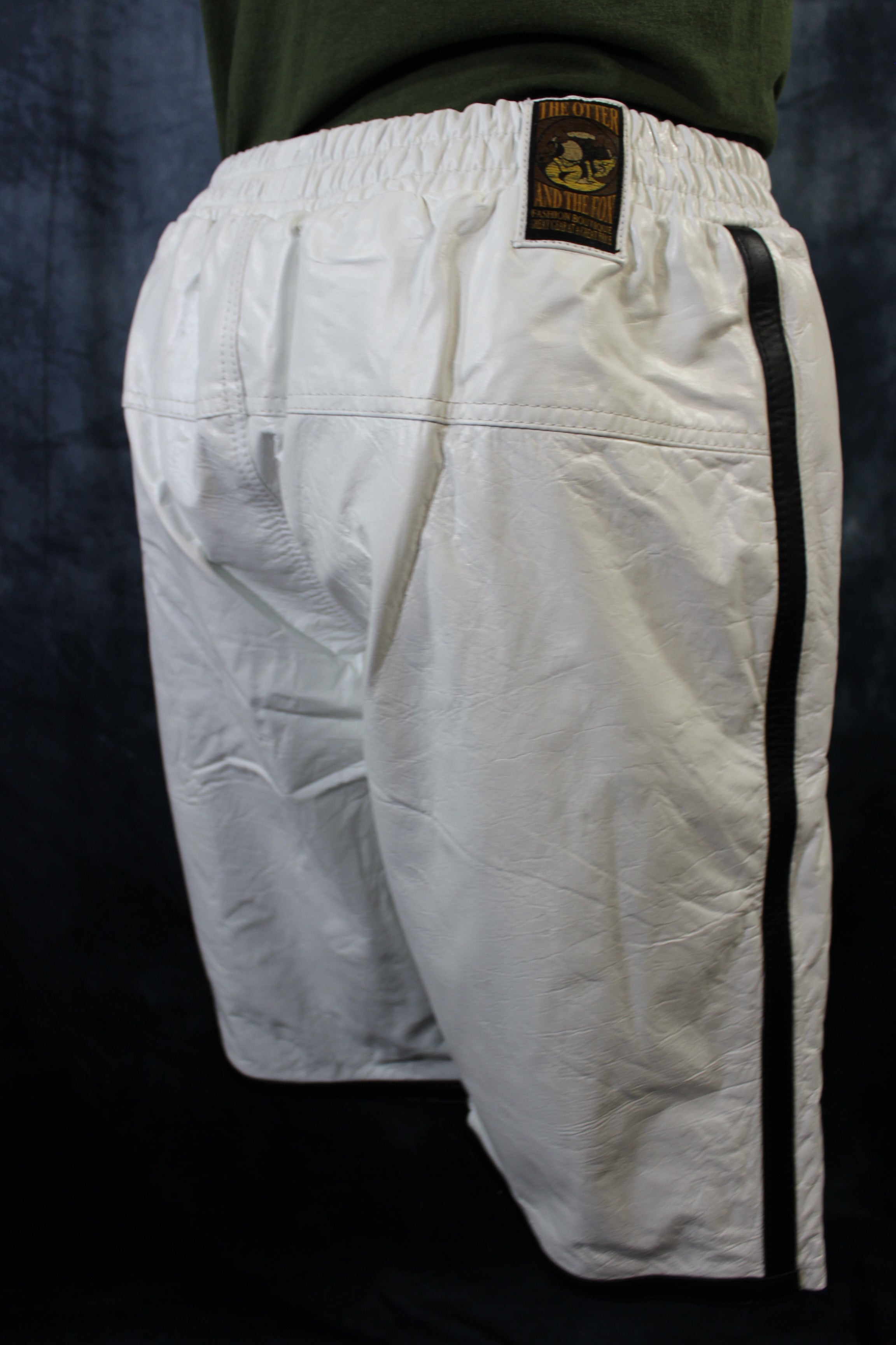 Enjoy the comfort of athletic wear with the luxury of leather with these shorts by The Otter and The Fox. These sporty shorts feature an elastic waistband for a comfortable, slip on fit, liner, and high quality leather. These shorts are loose and comfortable and are a perfect way to indulge your love of leather while looking and keeping cool in the hot summer.