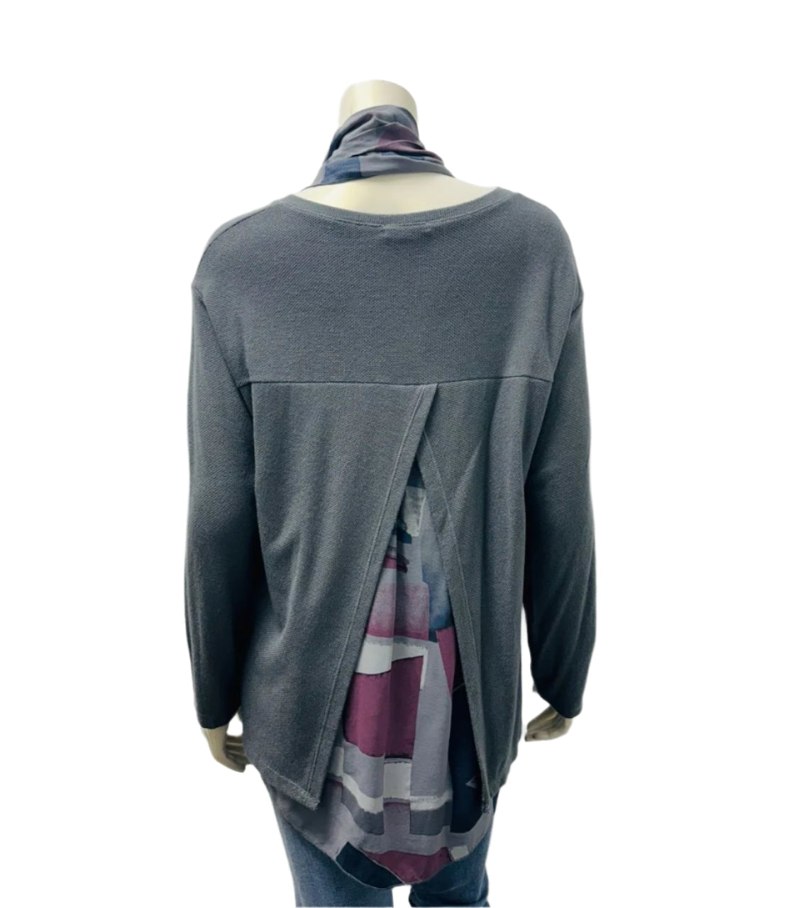Beautiful Catherine Lillywhite's Made in Italy Tunic Top Featuring Peek-a-Boo Abstract Print High -Low Hem