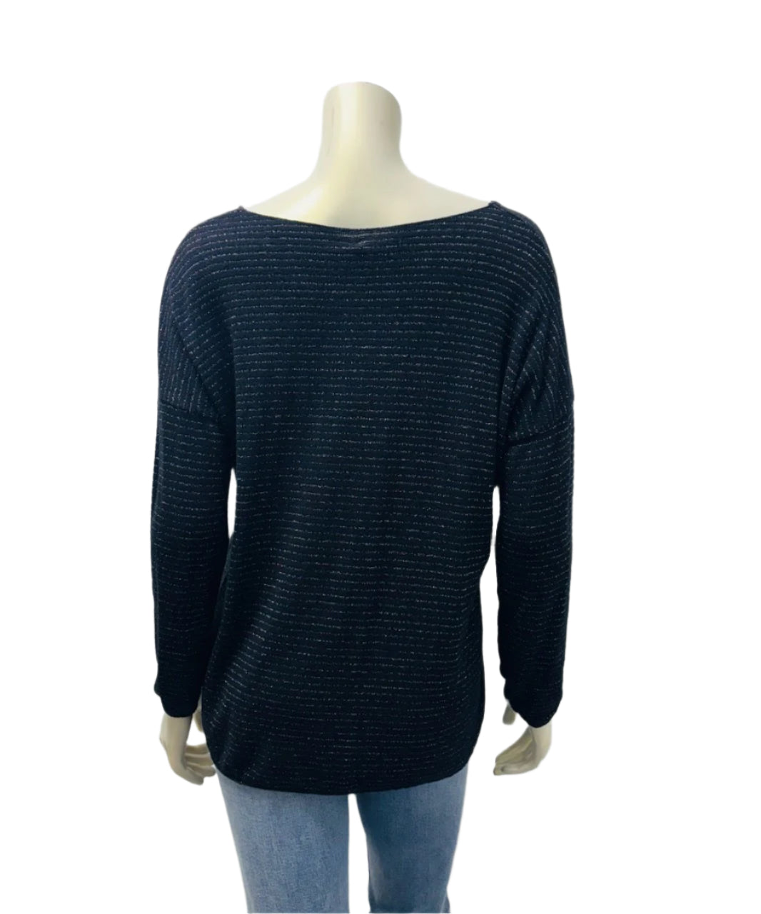 Beautiful & Soft Catherine Lillywhite's Made In Italy Long Sleeve Top Featuring Lurex Silver Stripe and Slight V-Neck