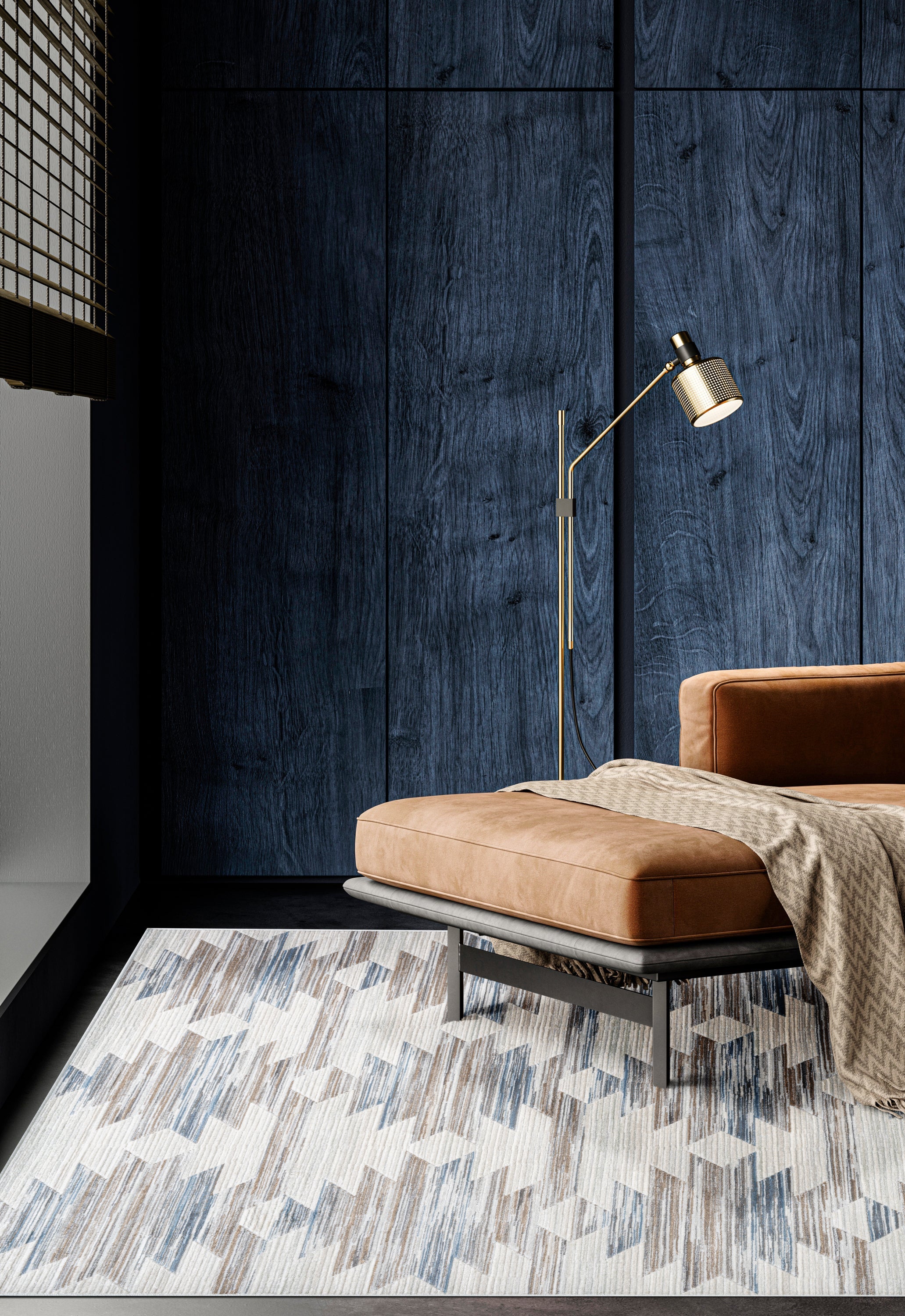 Eloise Blue, Brown, Chocolate, Copper, Grey, Ivory and White Viscose Area Rug