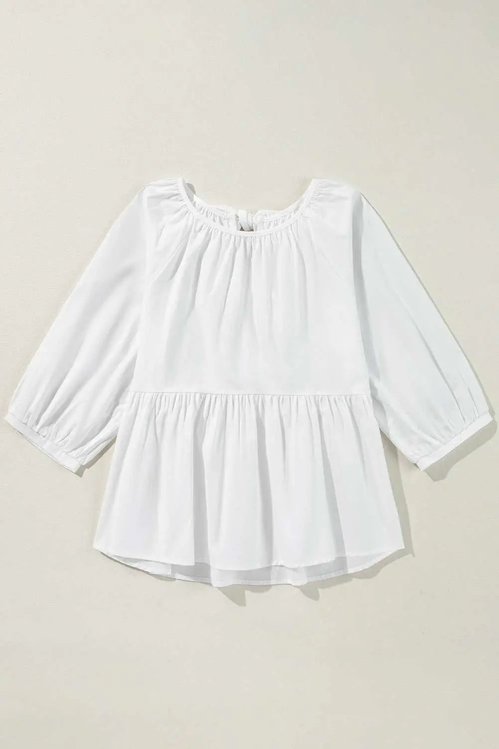Love Salve White Bow Knot Cutout Back Loose Fit 3/4 Sleeve Bl ‐ White / S / 100%Cotton