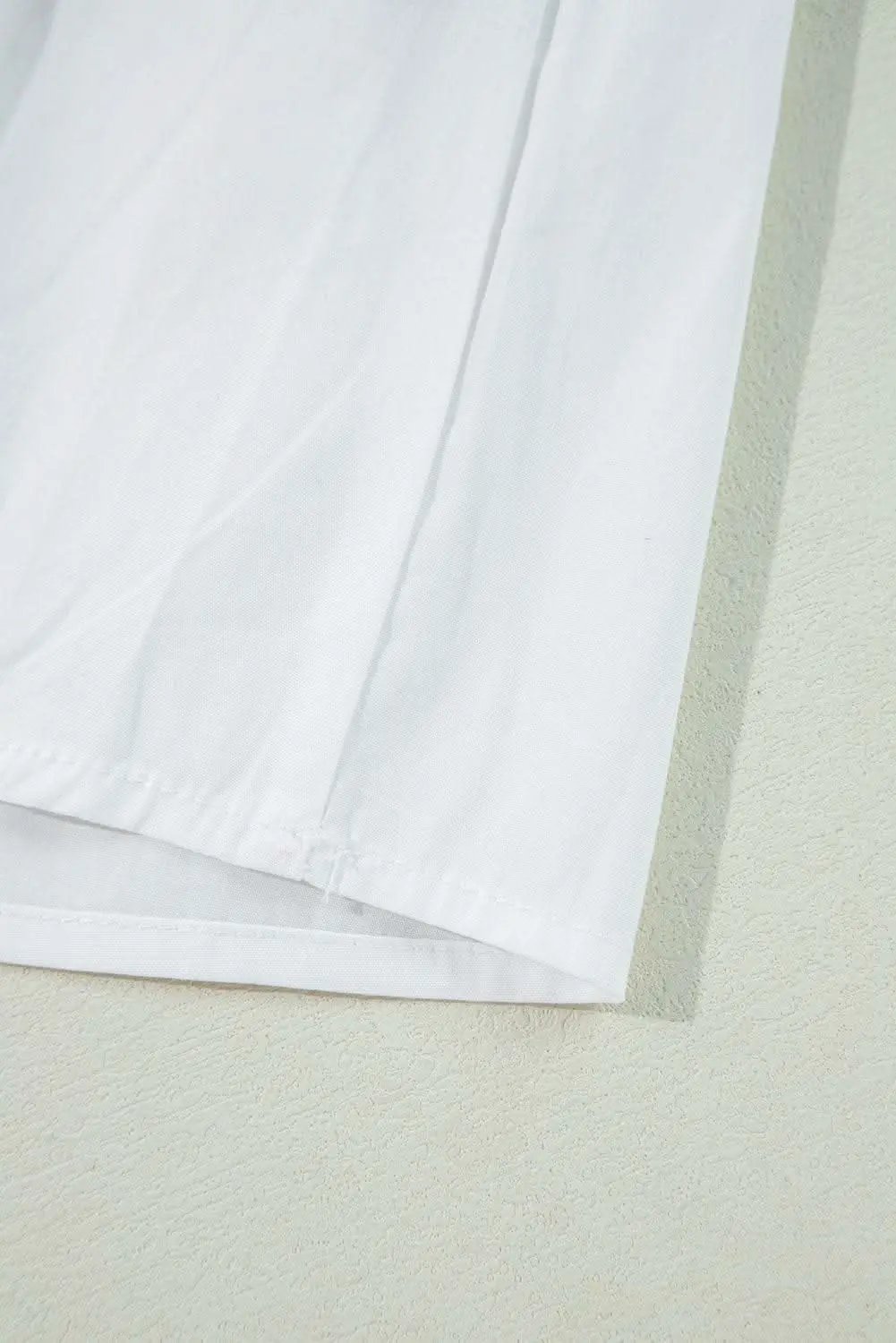 This white blouse pairs easily with denim, trousers, or skirts for both casual and dressier looks. The loose fit flatters a range of silhouettes and layers well under lightweight outerwear or cardigans.