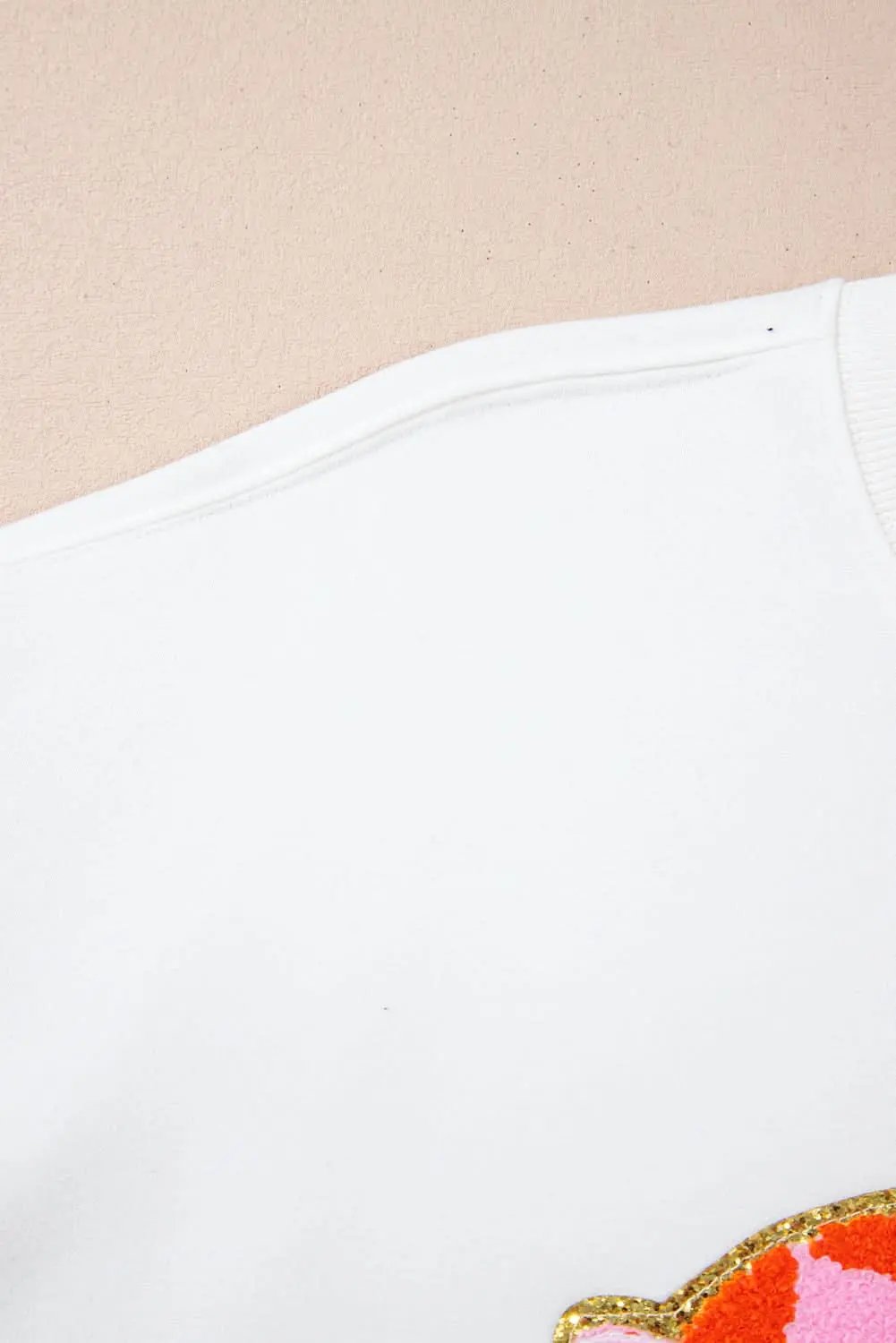 Love Salve White Terry Halloween Pumpkin Patched Pattern Pullover Sweatshirt