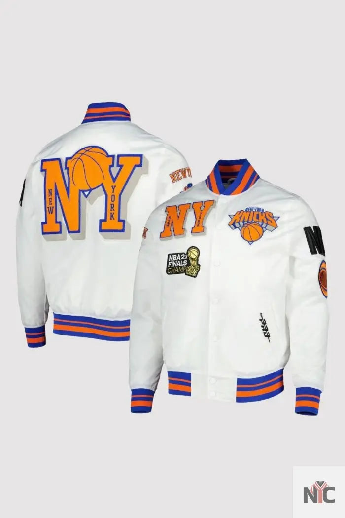 New York Knicks NBA 2X Finals Champions White Varsity Jacket