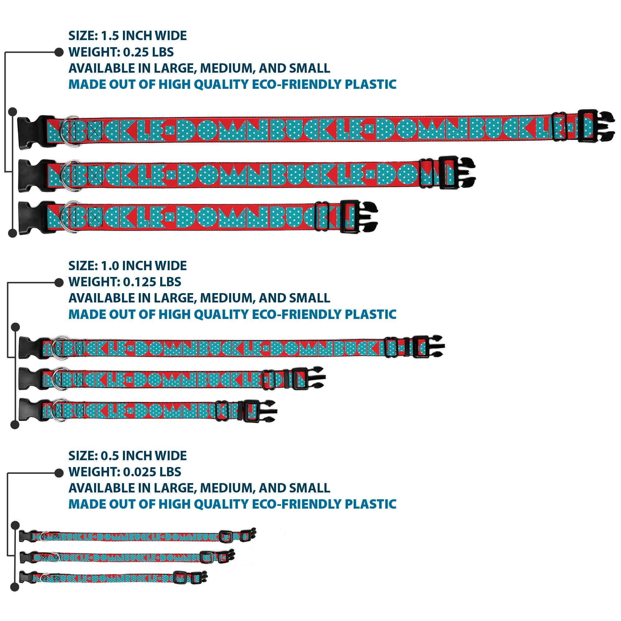 Plastic Clip Collar - BUCKLE-DOWN Shapes Red/Dot Turquoise/White ‐ 0.5" WIDE / MEDIUM