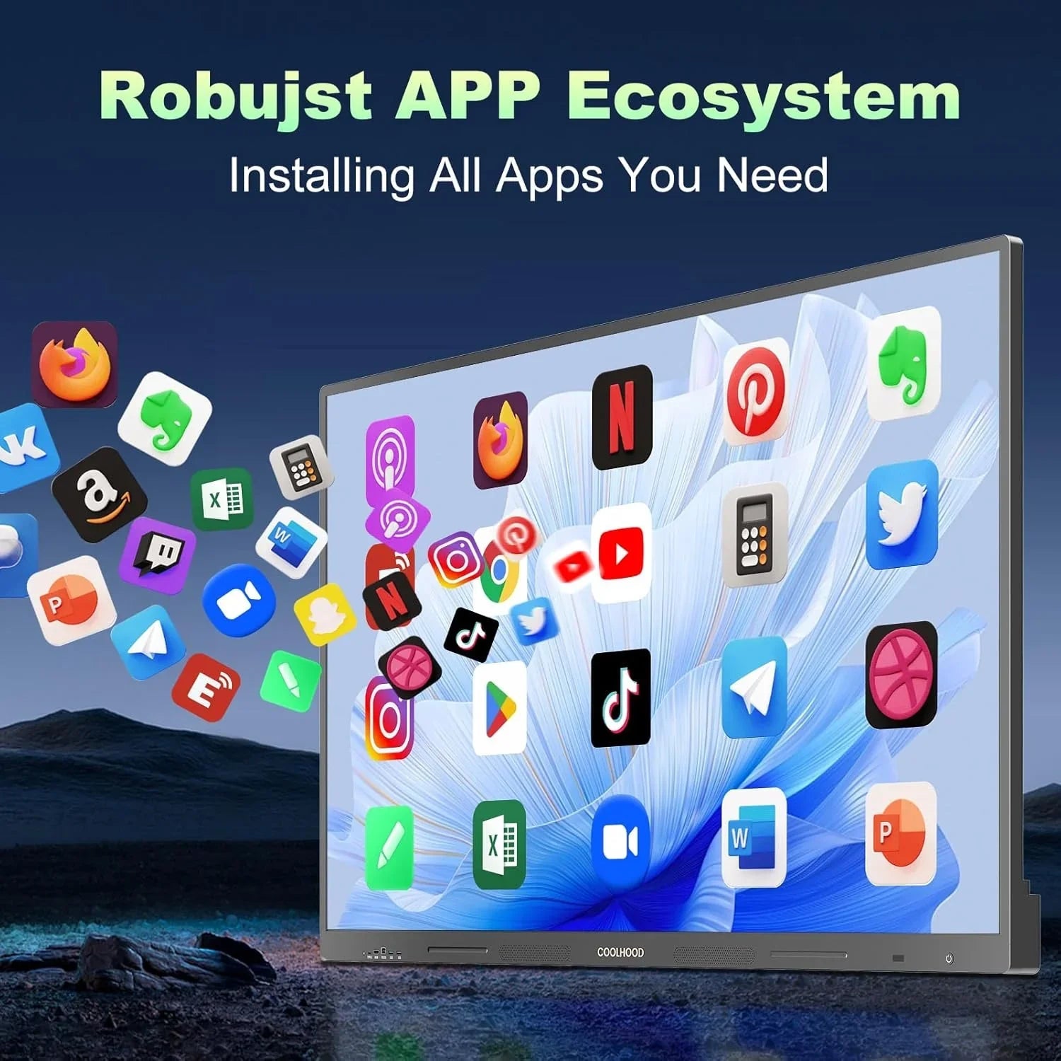 Running on an open Android ecosystem, users can install a wide range of apps, access cloud storage, and securely save and share files via email or cloud services. Designed for both education and business, the COOLHOOD LT65D8 is a powerful tool for interactive learning, remote collaboration, and dynamic presentations.