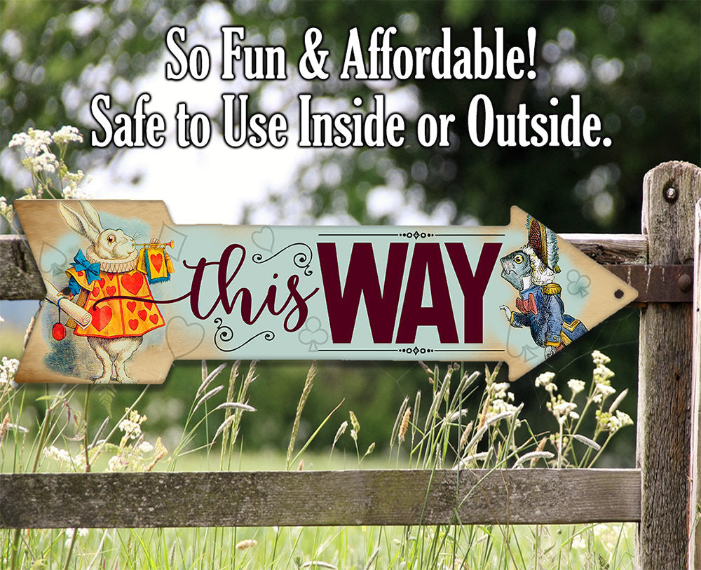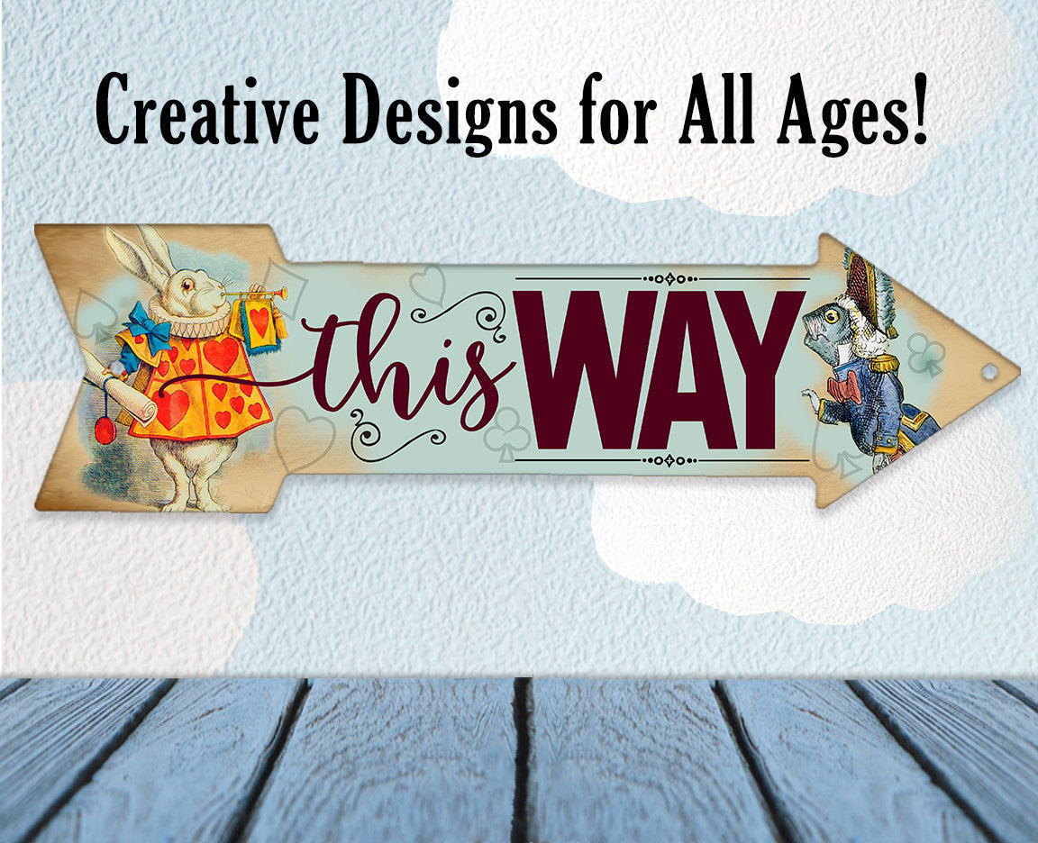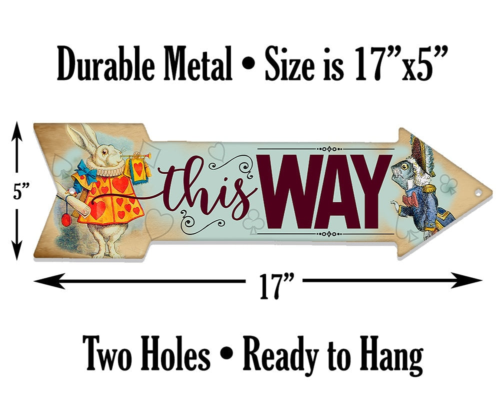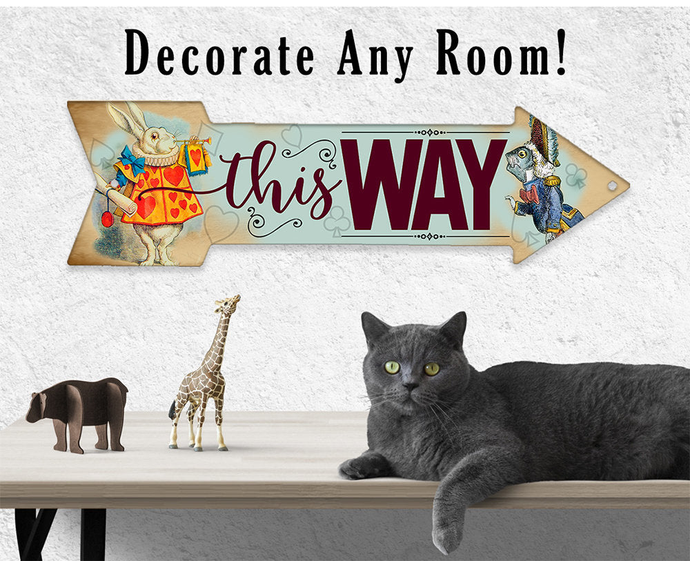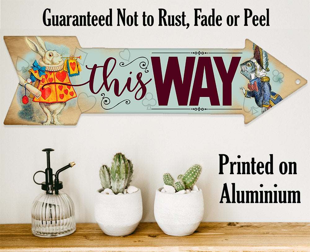 This Way - White Rabbit - Directional Arrow - Metal Sign
