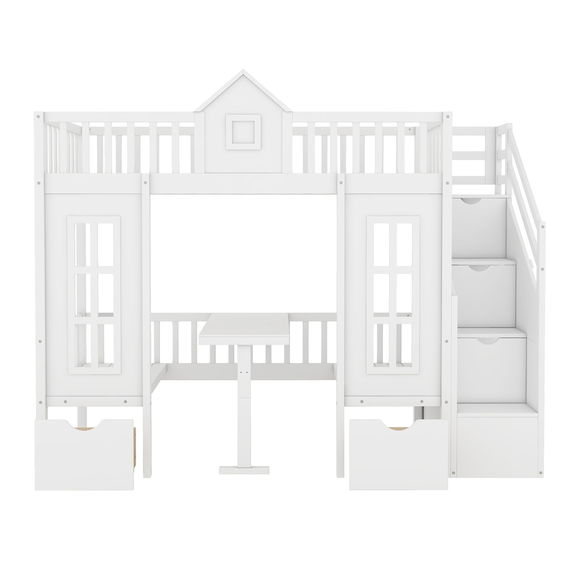 Twin-Over-Twin Bunk Bed with Changeable Table, Bunk Bed Turn into Upper Bed and Down Desk -White