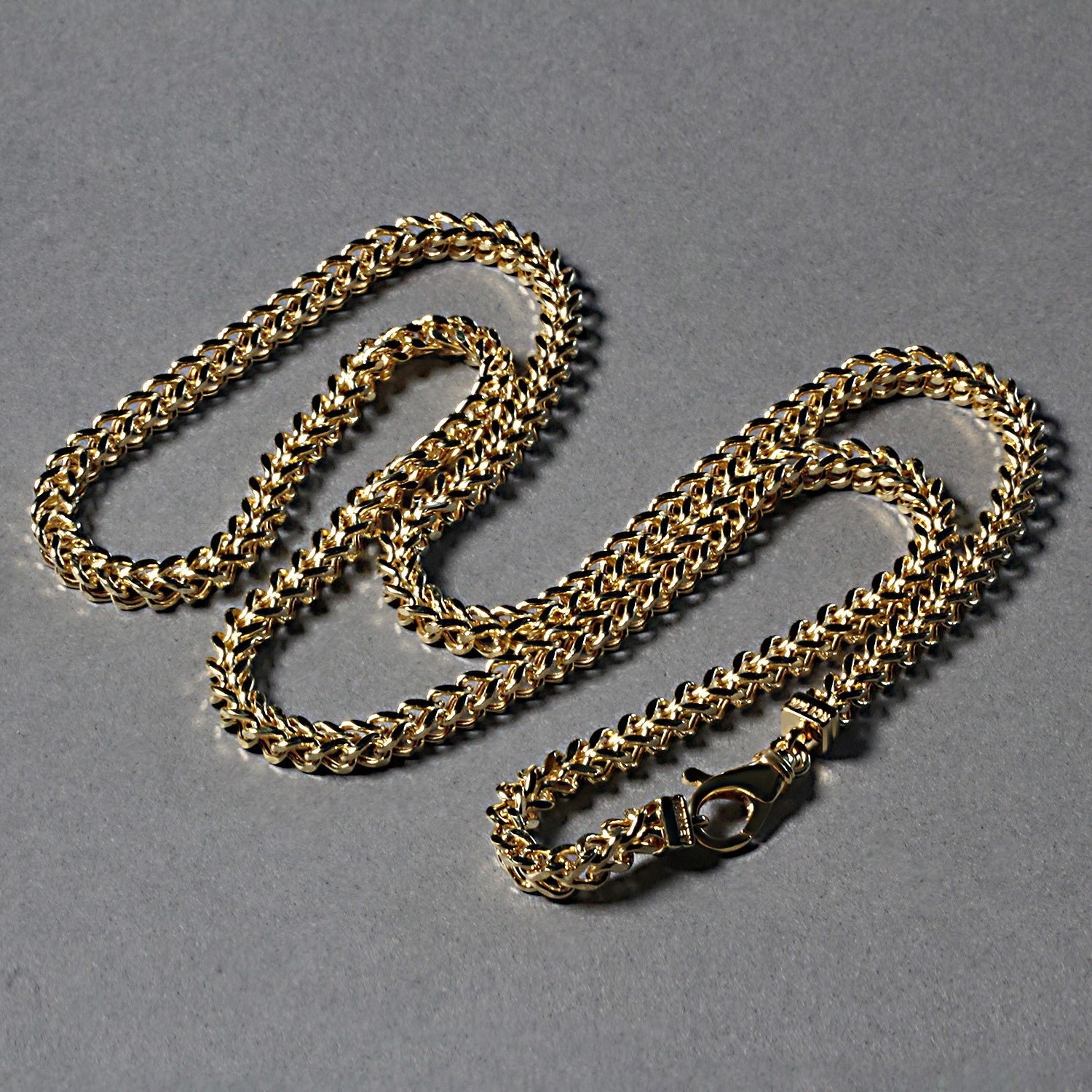 This square franco chain comes in 14k yellow gold and has a width of 4.40 millimeters.
