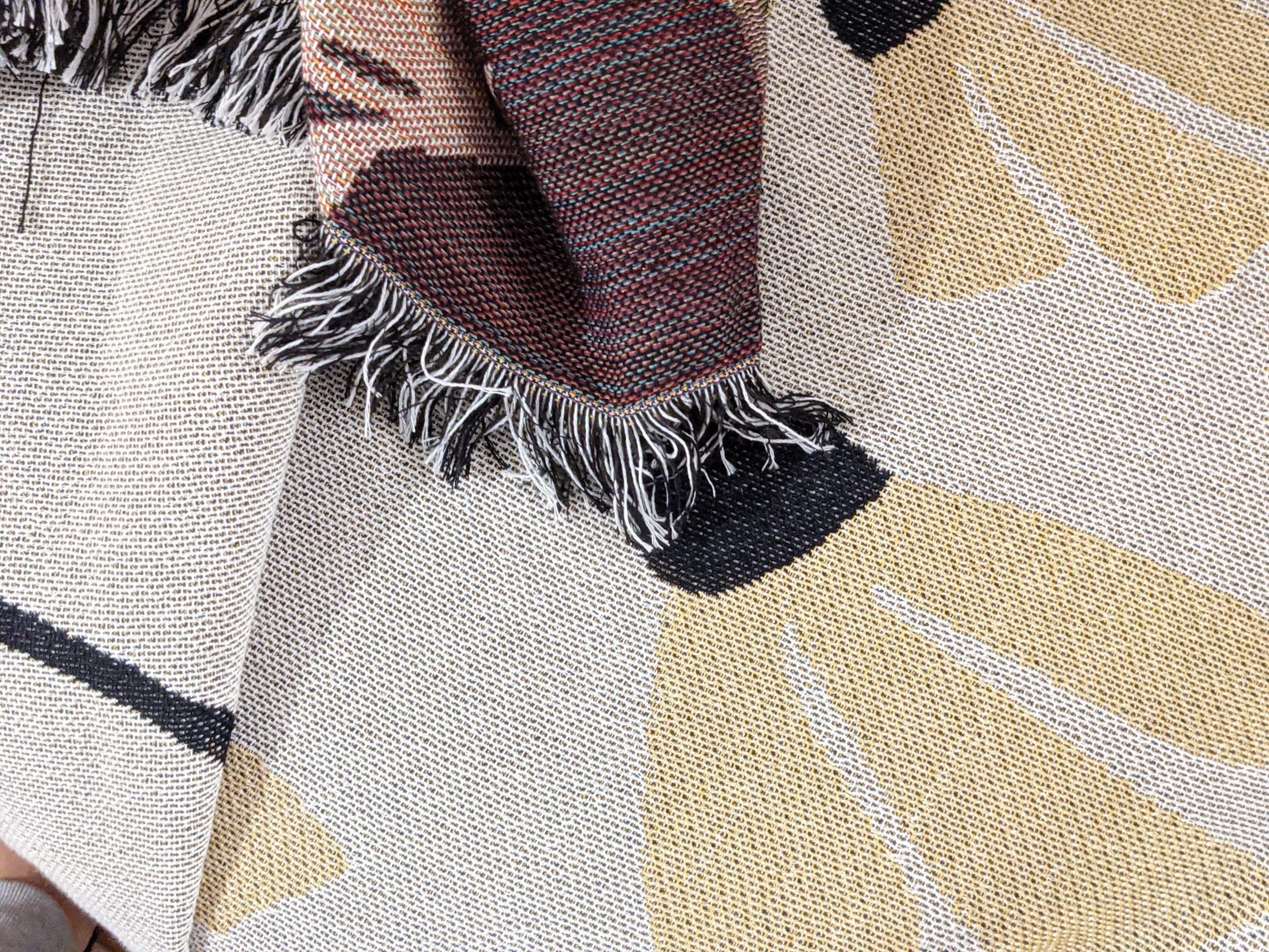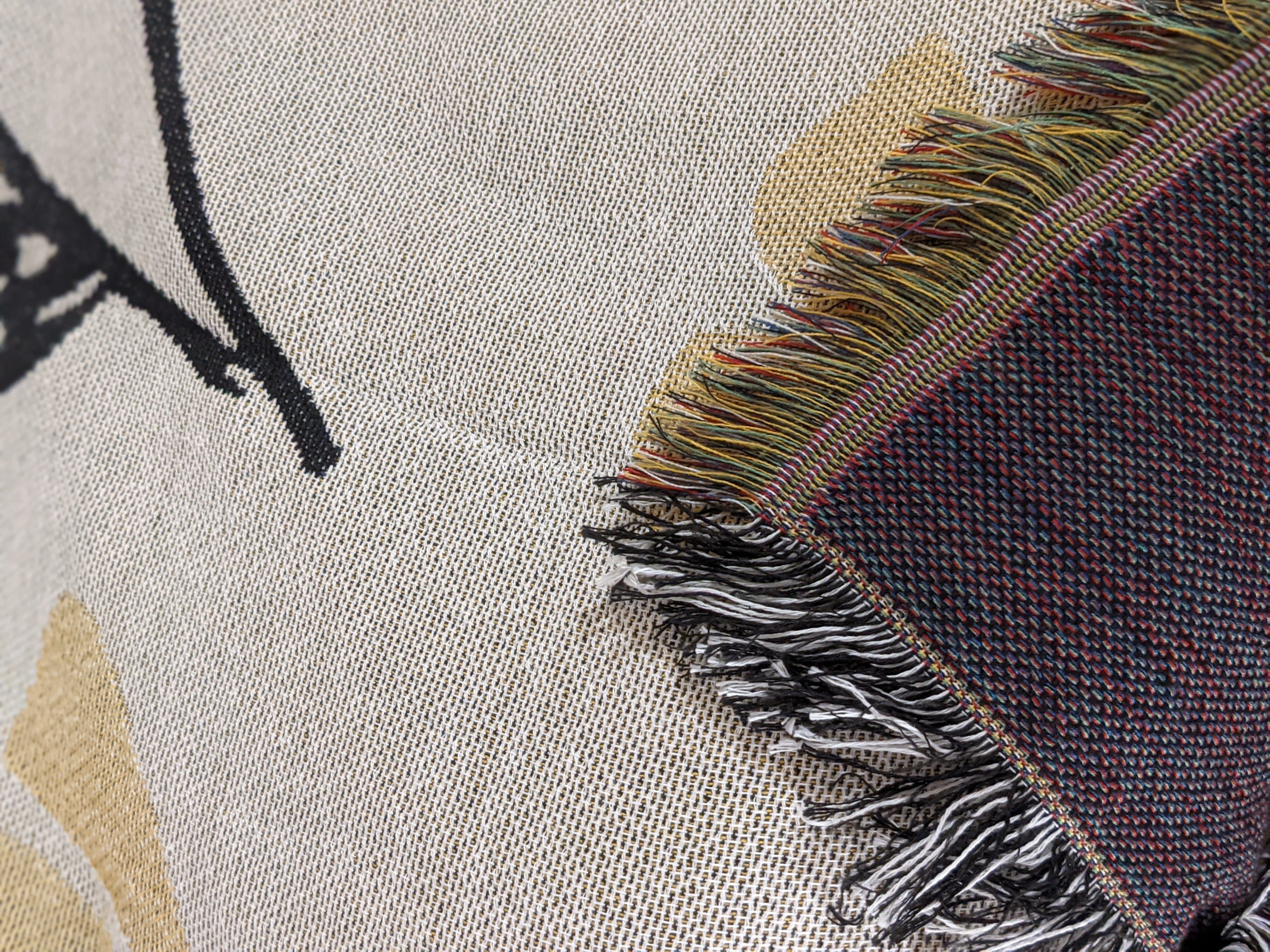 Accented with dainty yellow floral patterns on a solid ivory cream background showing off a bright pop of color to your home décor on our lightweight, durable and tapestry throw blankets.